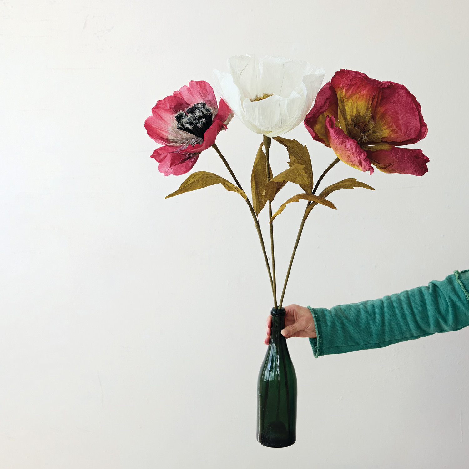 Paper Flower Pick, Green & Cream Color