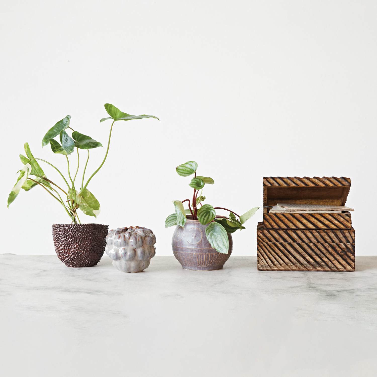 Embossed Stoneware Planter w/ Pattern (Holds 5" Pot) (Each One Will Vary)
