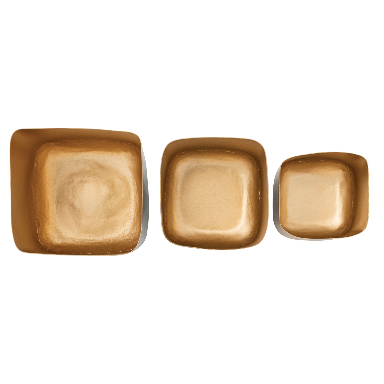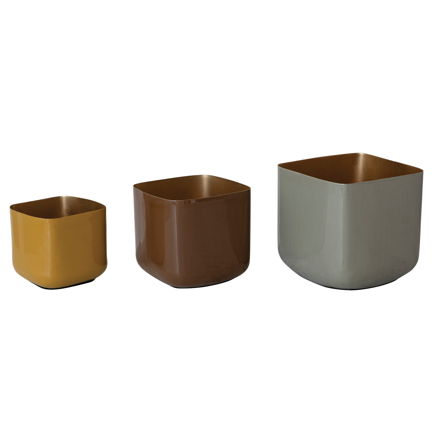 Catalog Name: 7-1/4" Square x 7"H, 6-1/4" Square x 6"H & 5-1/4" Square x 4-3/4"H Enameled Metal Planters, Multi Color, Set of 3 (Holds 6", 5" & 4" Pots)