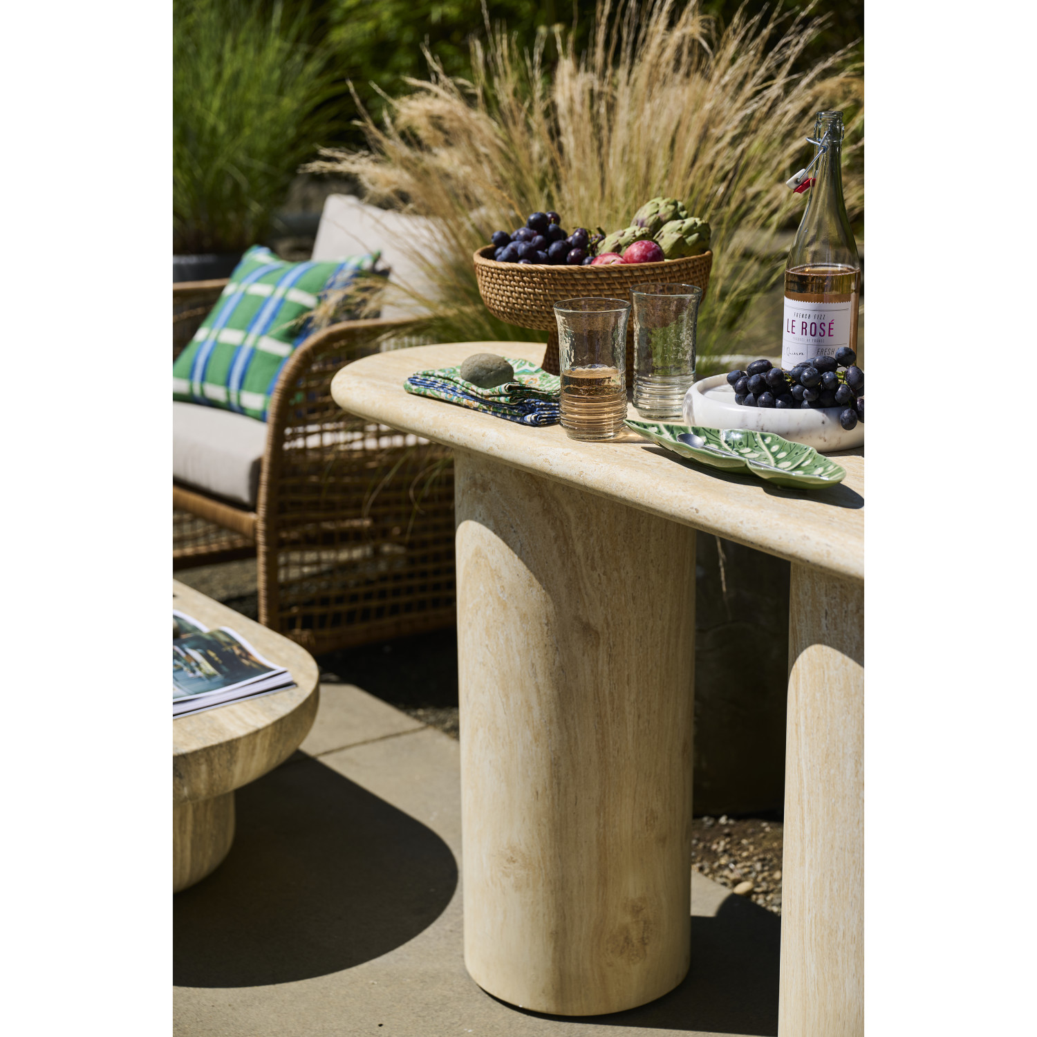 Lightweight Eco Stone Indoor/Outdoor Table, Travertine Finish, KD