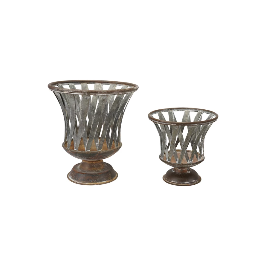 Woven Metal Footed Planters, Distressed Finish, Set of 2 (Holds 4" & 3" Pots)