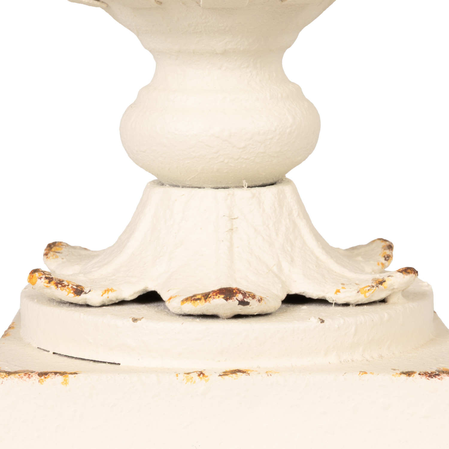 Catalog Name: 9" Round x 14-3/4"H Woven Metal Footed Urn, Distressed Finish, White