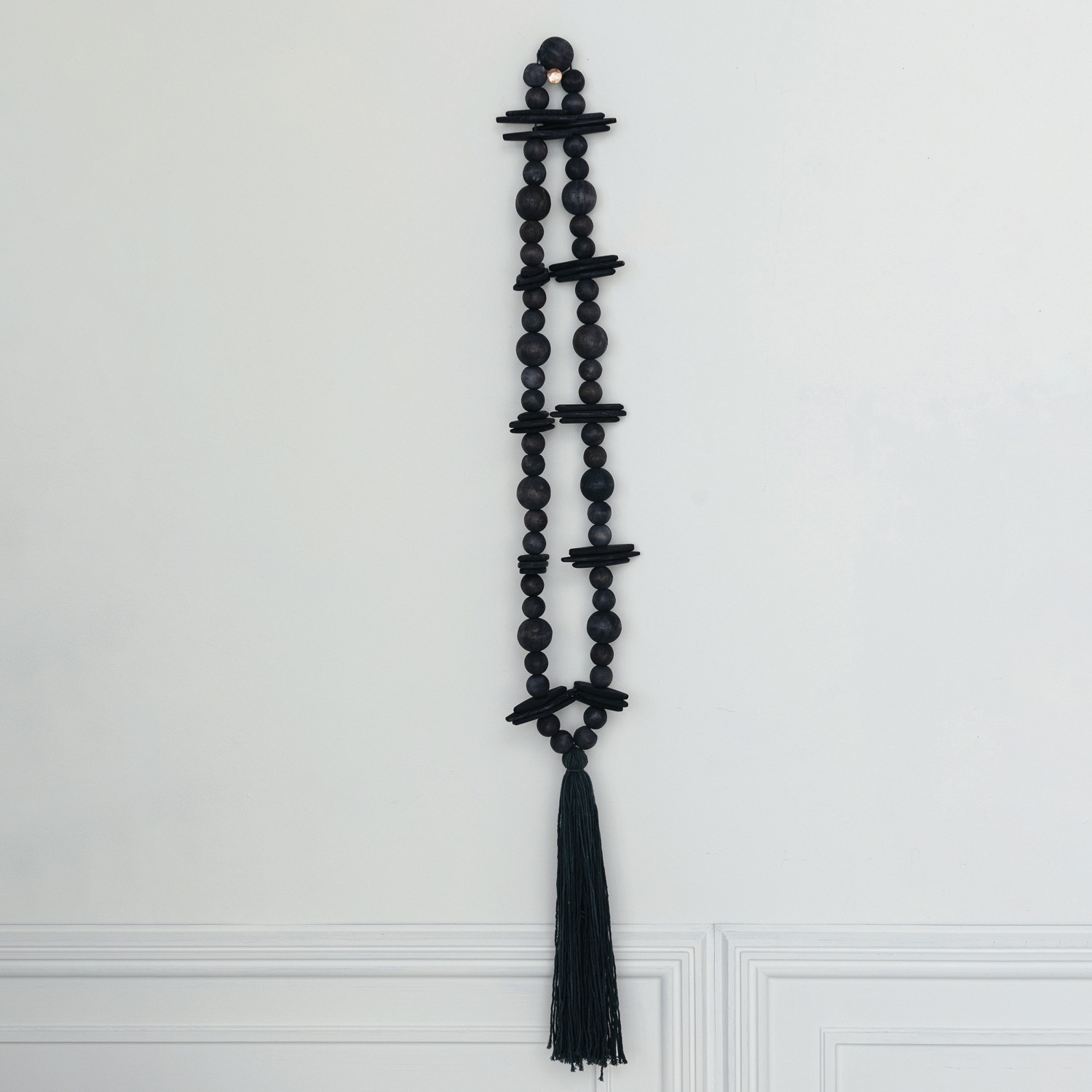Catalog Name: 36"L Oak Wood Beads w/ Cotton Tassel, Black