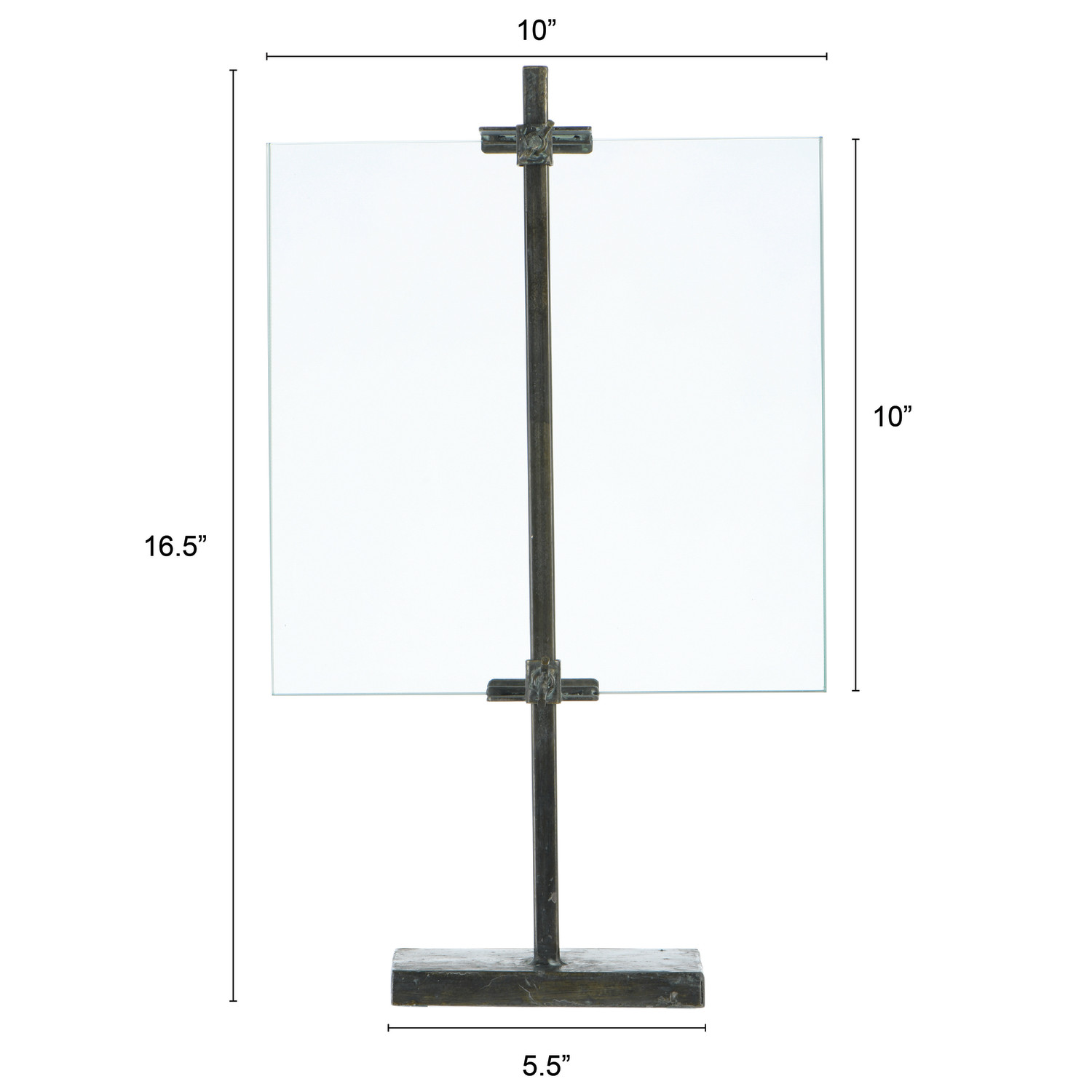 Catalog Name: 10"L x 16-3/4"H Metal & Glass Floating Photo Frame w/ Stand & Adjustable Clamps, Black (Holds 8" x 10" Photo)