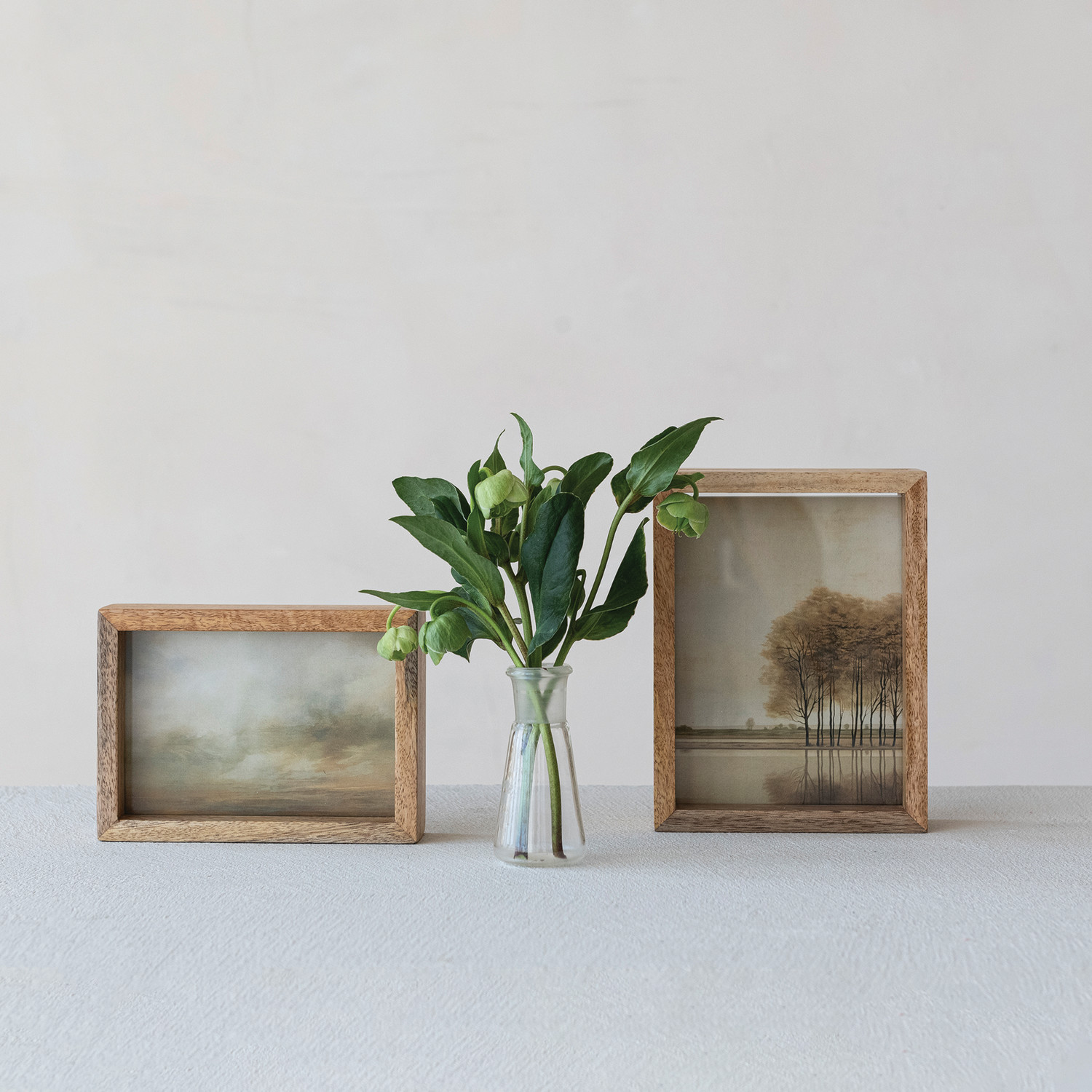 Catalog Name: 5"L x 7"H Mango Wood & Glass Floating Two-Sided Photo Frame, Natural (Holds 4" x 6" Photo)