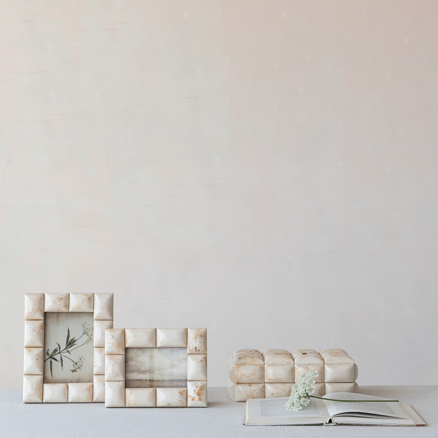 Catalog Name: 8"L x 10"H MDF & Marbled Resin Tile Photo Frame, Ivory Color (Holds 5" x 7" Photo)(Each One Will Vary)