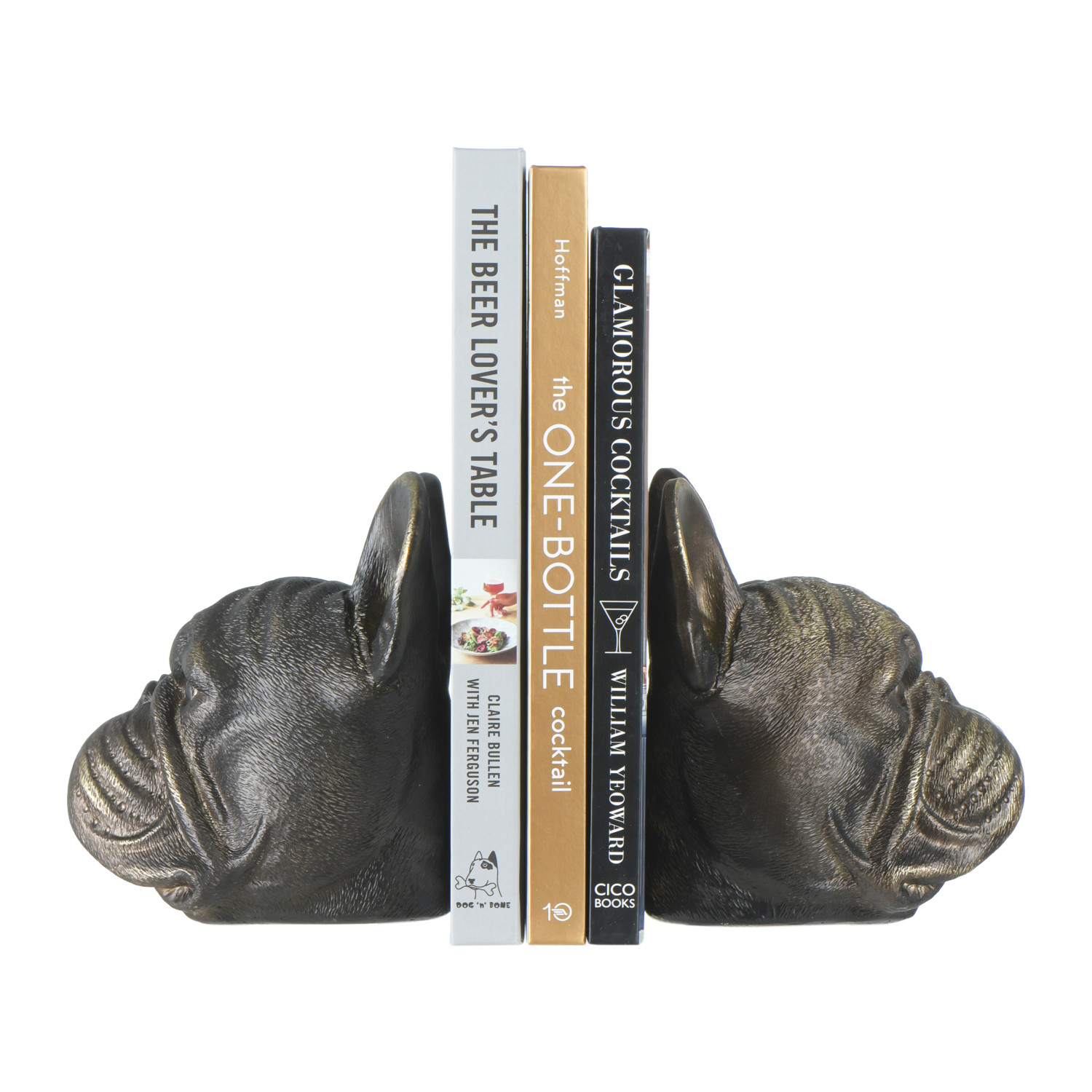 Catalog Name: 4-3/4"L x 4-1/2"W x 5-1/2"H Resin French Bulldog Head Shaped Bookends, Antique Bronze Finish, Set of 2