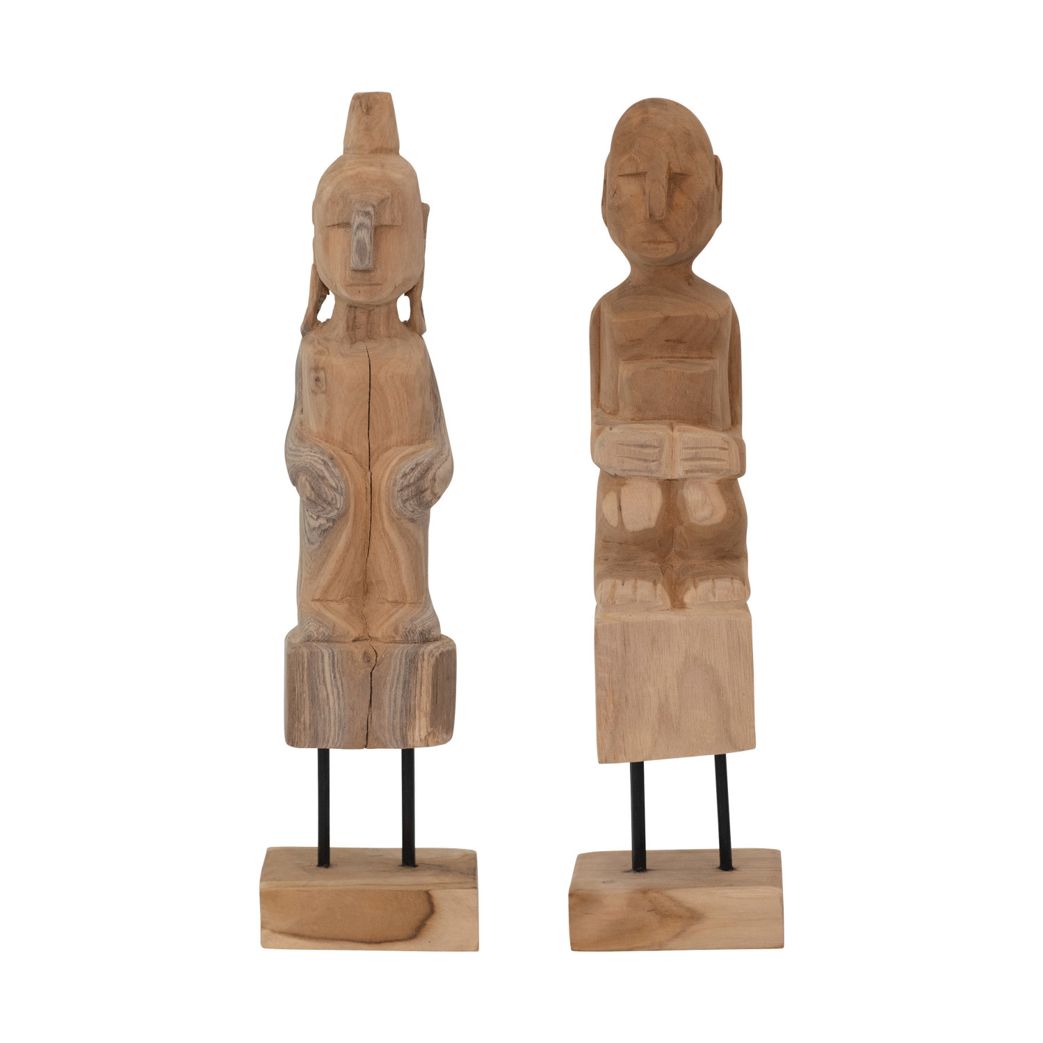 Hand-Carved Teakwood Figure on Stand, 2 Styles