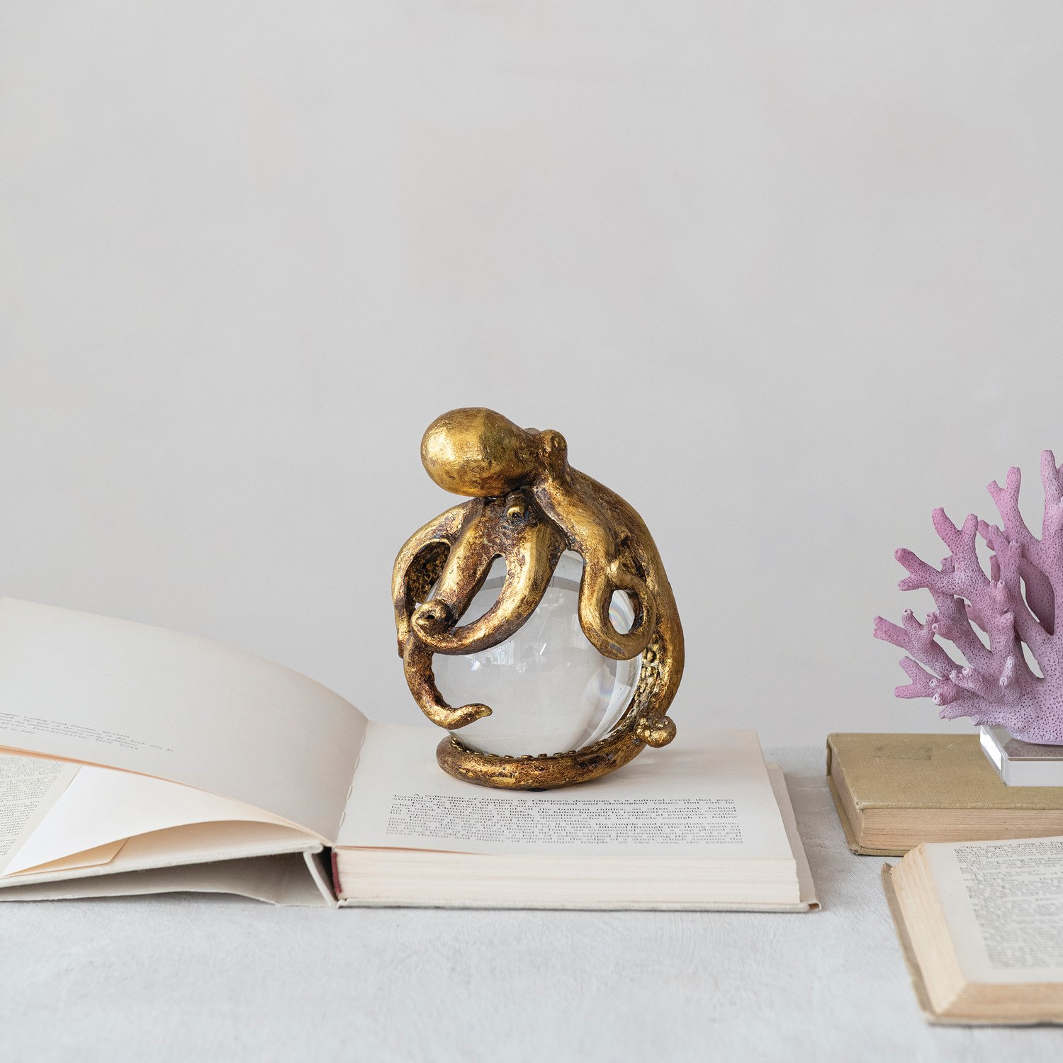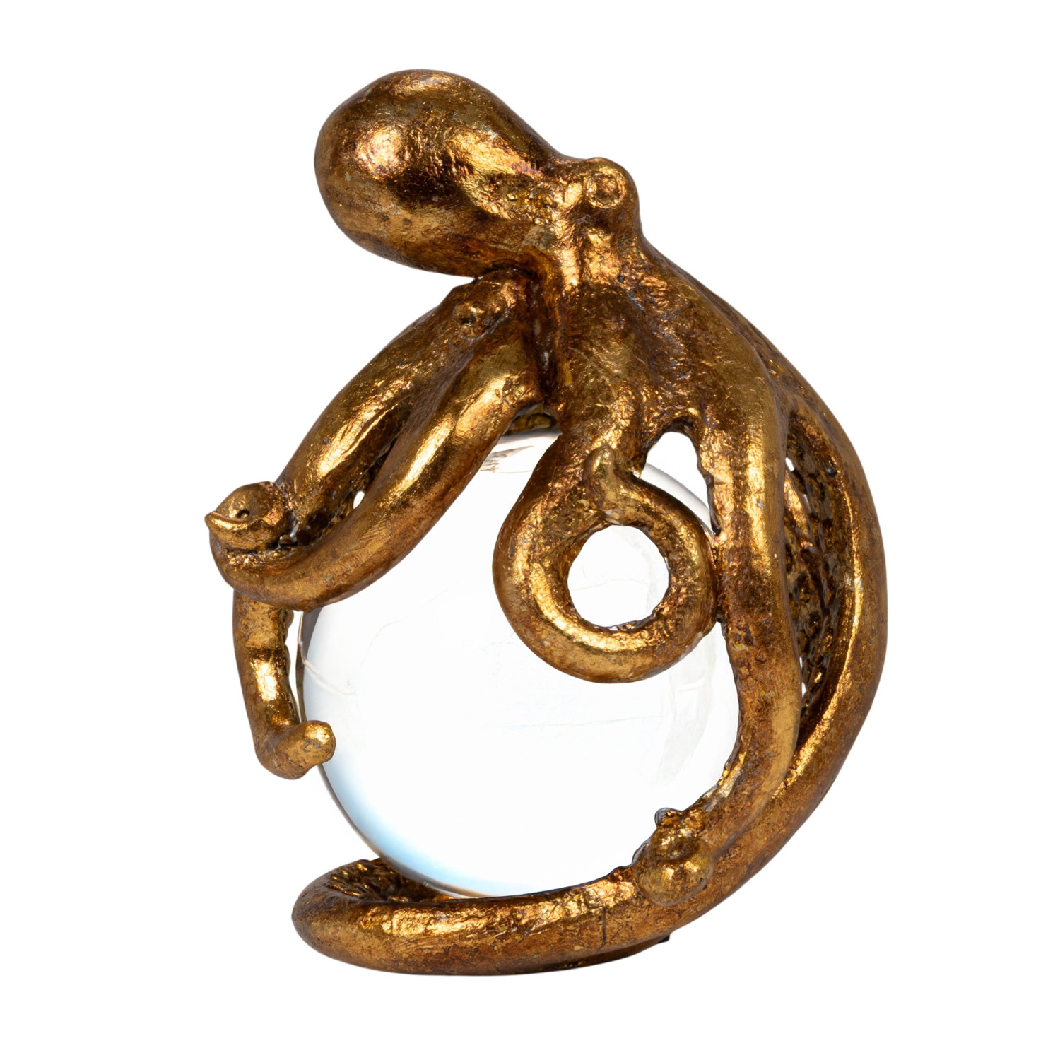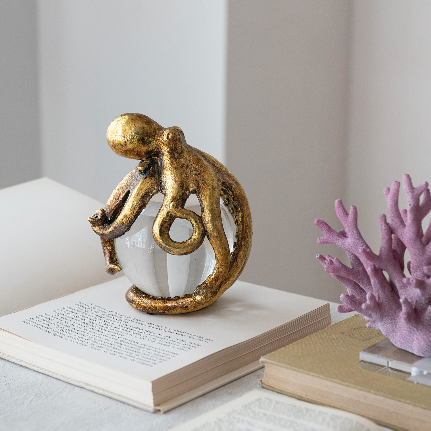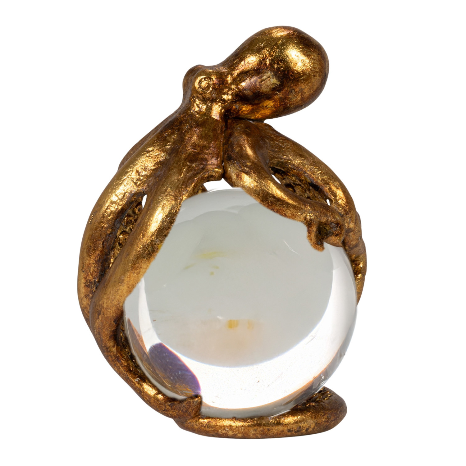 Catalog Name: 5-1/2"L x 5"W x 7"H Resin Octopus on Glass Ball w/ Gold Leaf Finish, Truck Ship