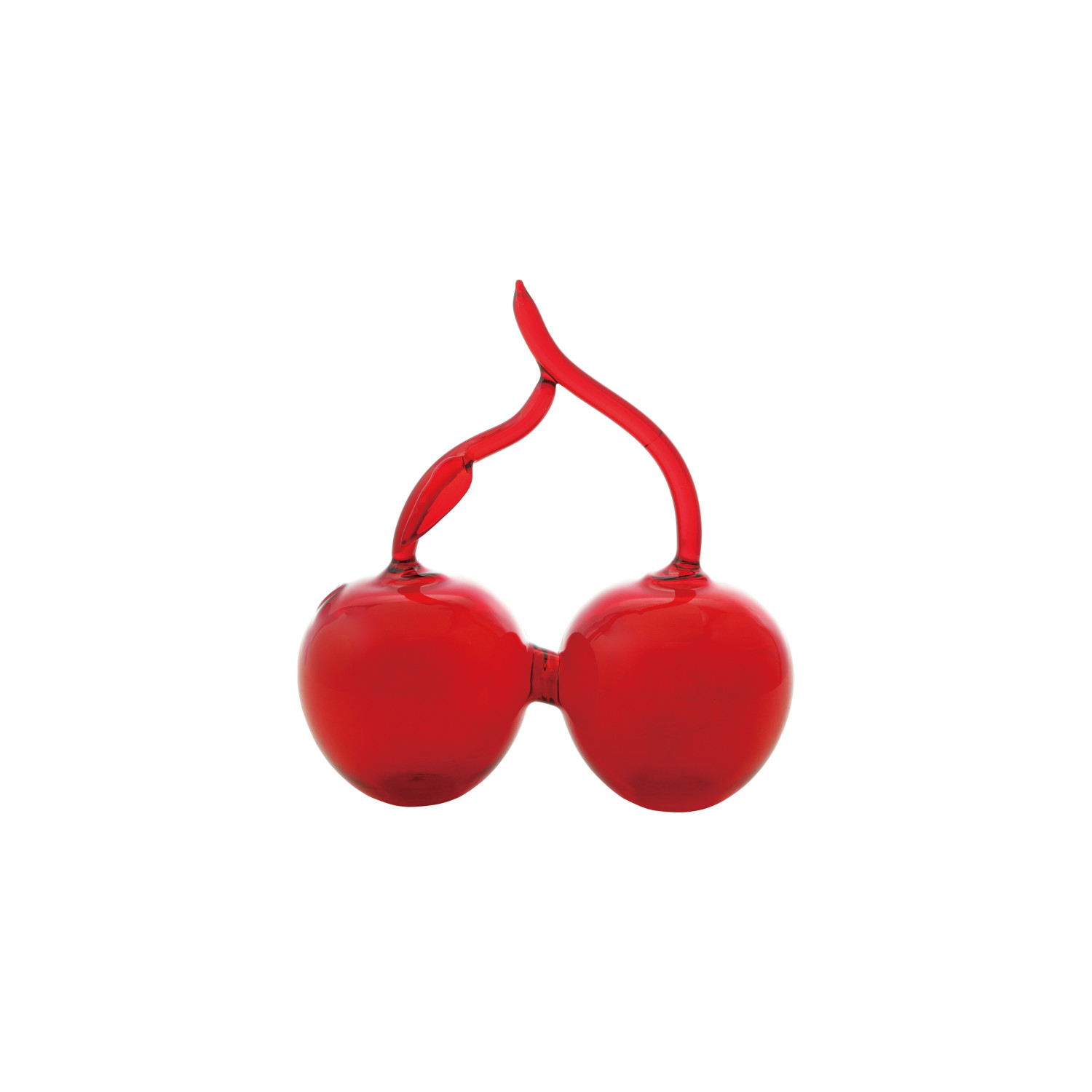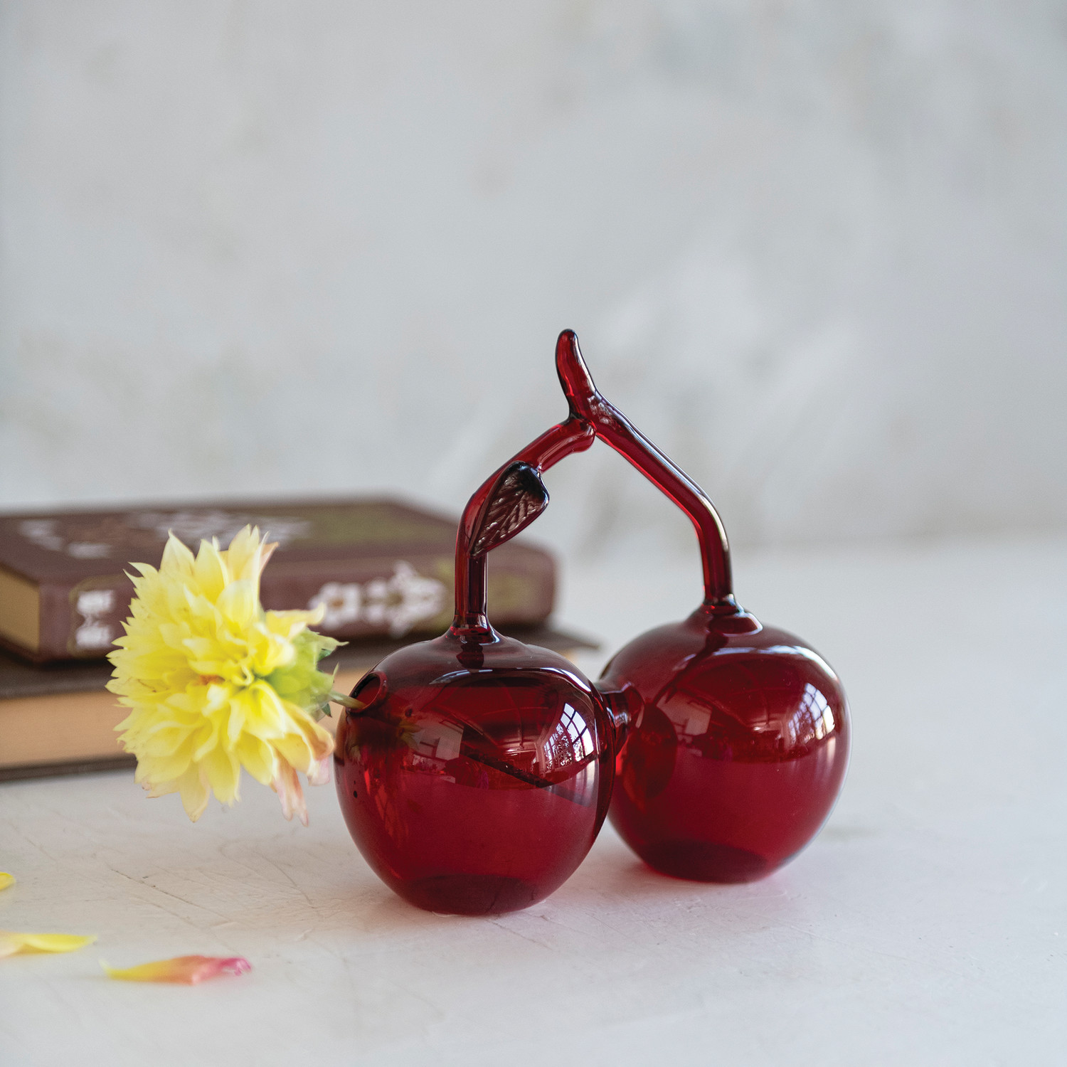 Hand-Blown Glass Cherries Shaped Vase, Red