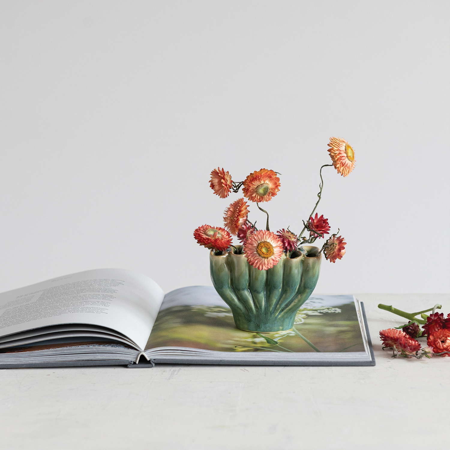 Catalog Name: 4-1/4"L x 2-1/2"W x 3"H Stoneware Sculptural Vase w/ 6 Sections, Reactive Glaze, Green (Each One Will Vary)