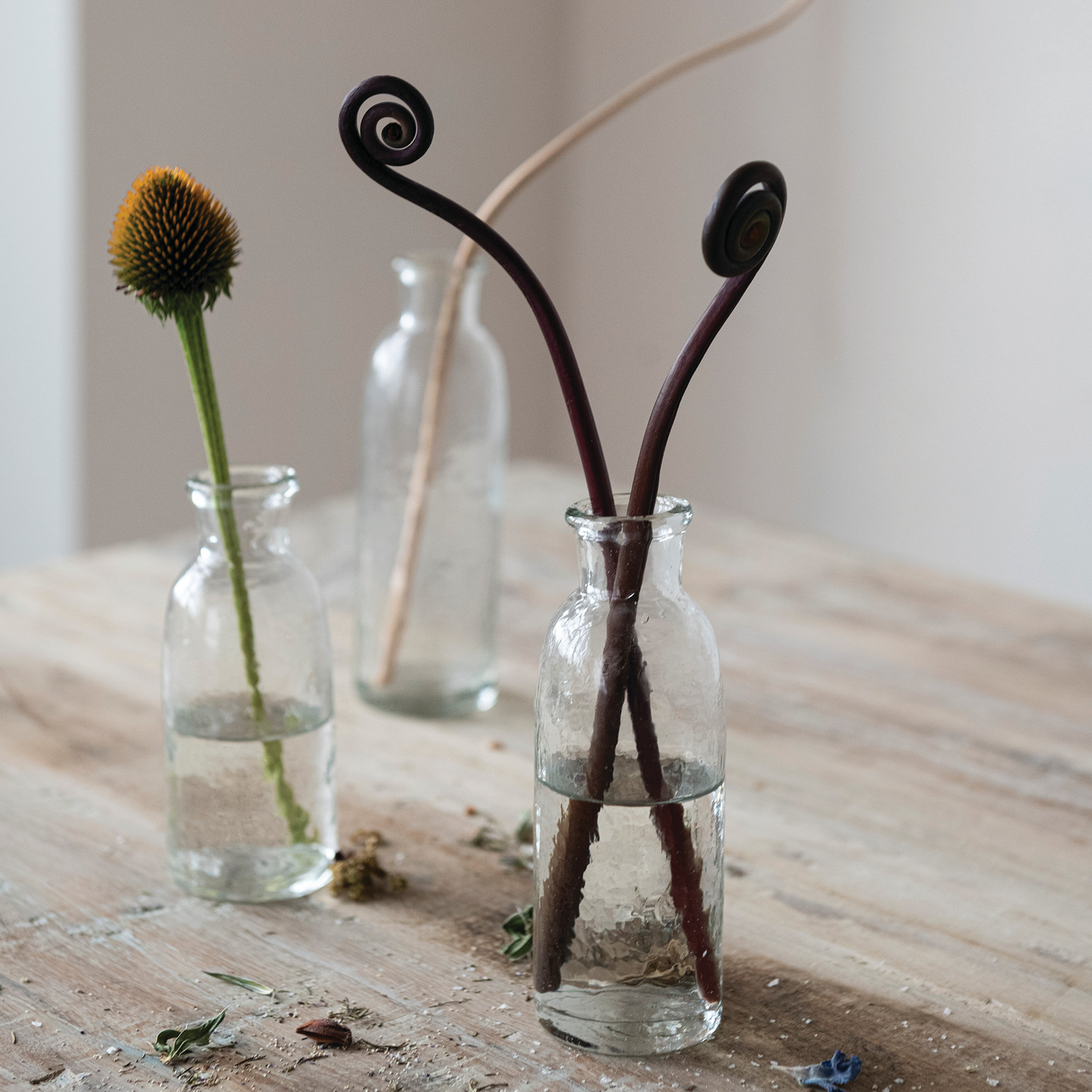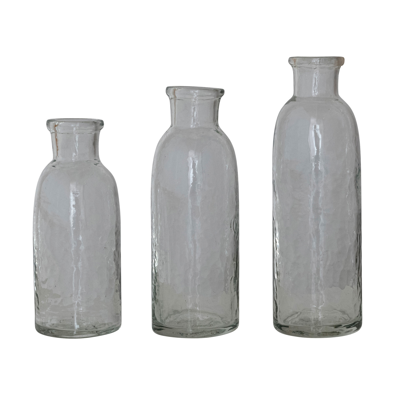 Catalog Name: 6"H, 5-1/4"H & 4-1/2"H Hand-Blown Glass Bottle Vases, Set of 3