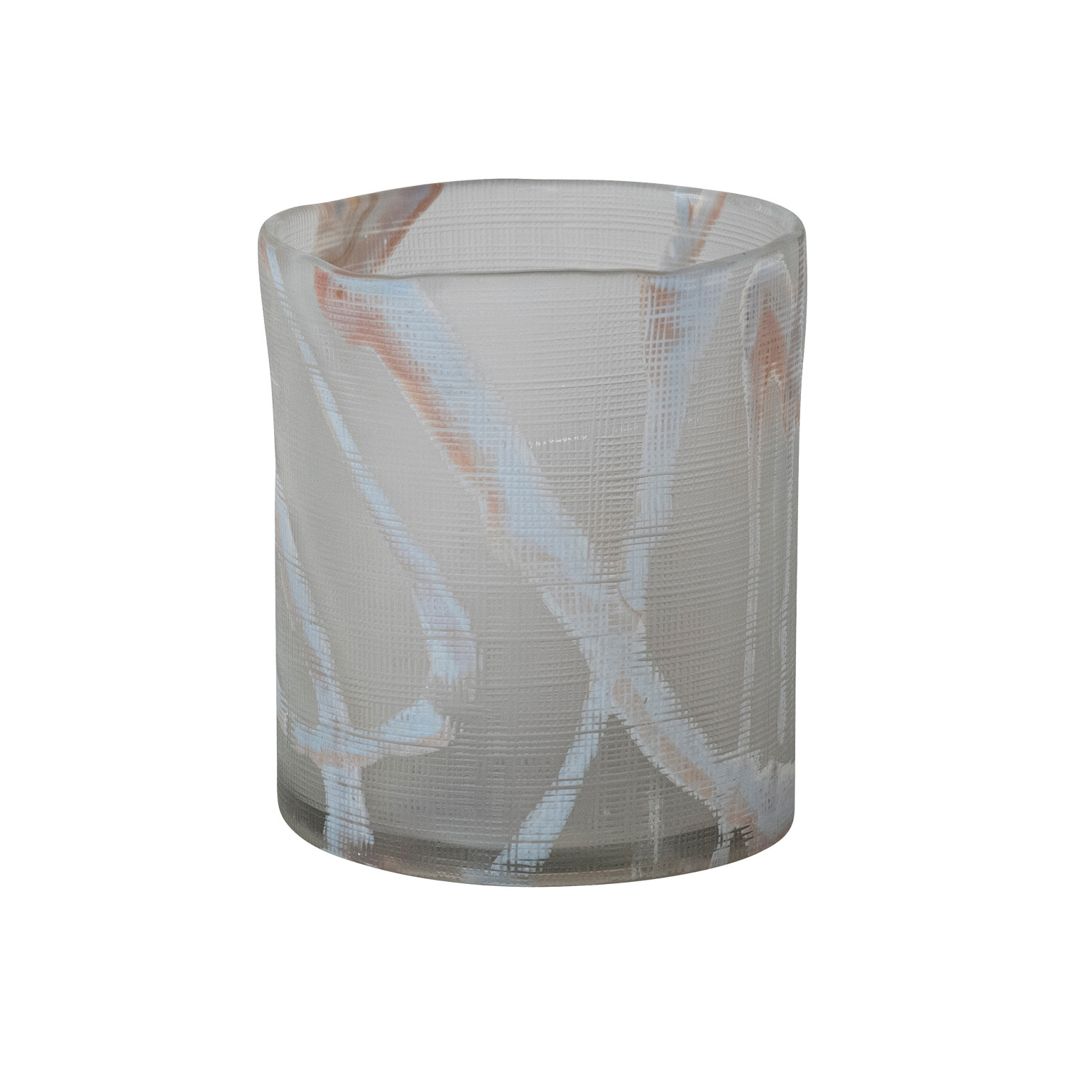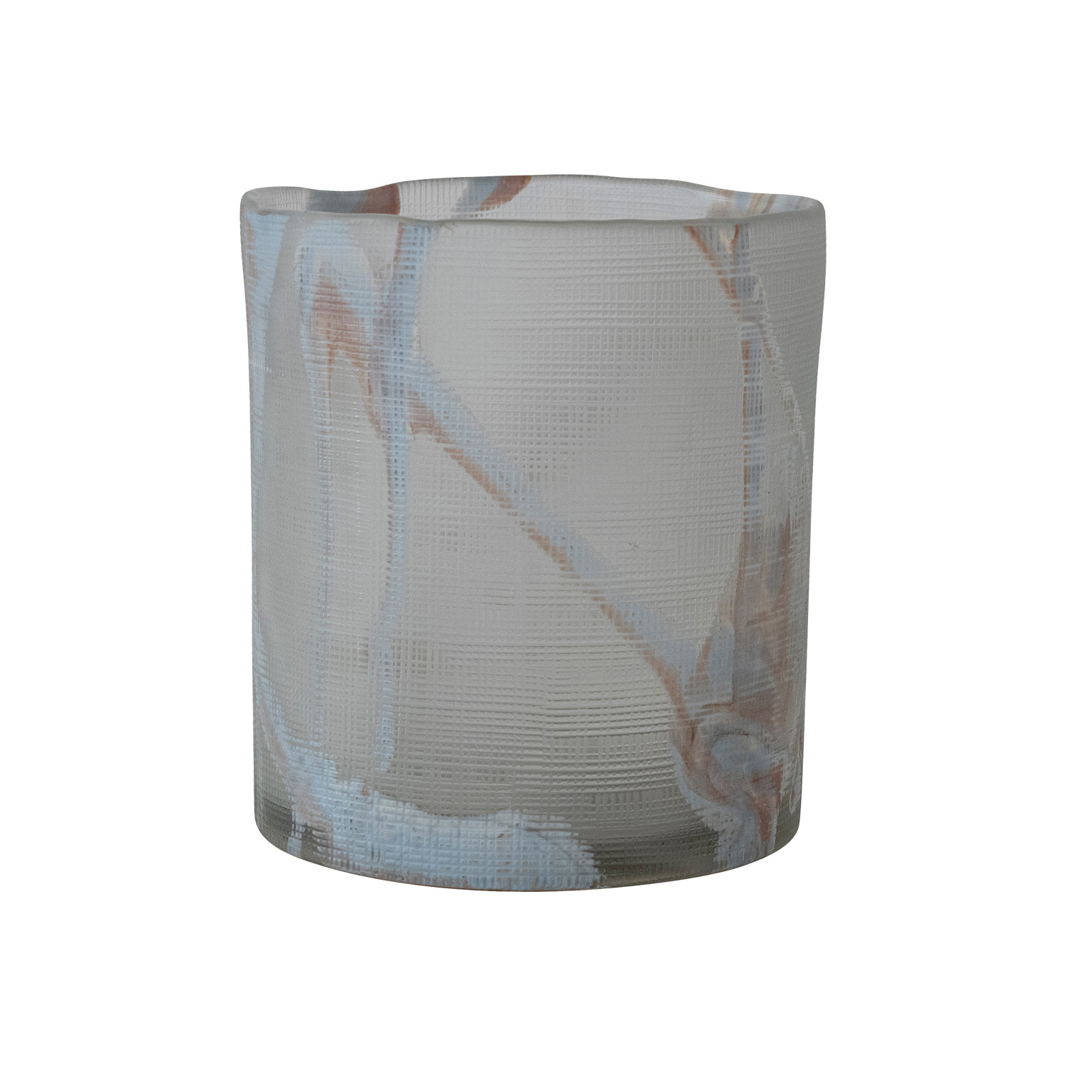 7" Round x 8"H Textured Art Glass Candle Holder (Each One Will Vary)