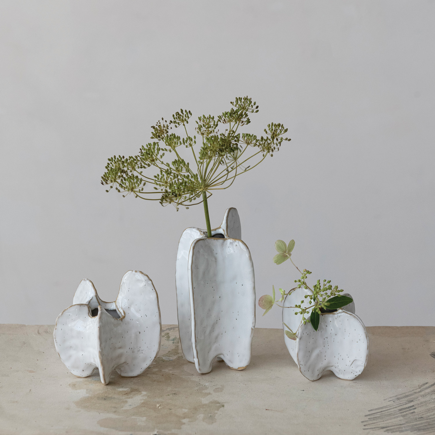 Stoneware Organic Shaped Vase, White, 3 Styles (Each One Will Vary)