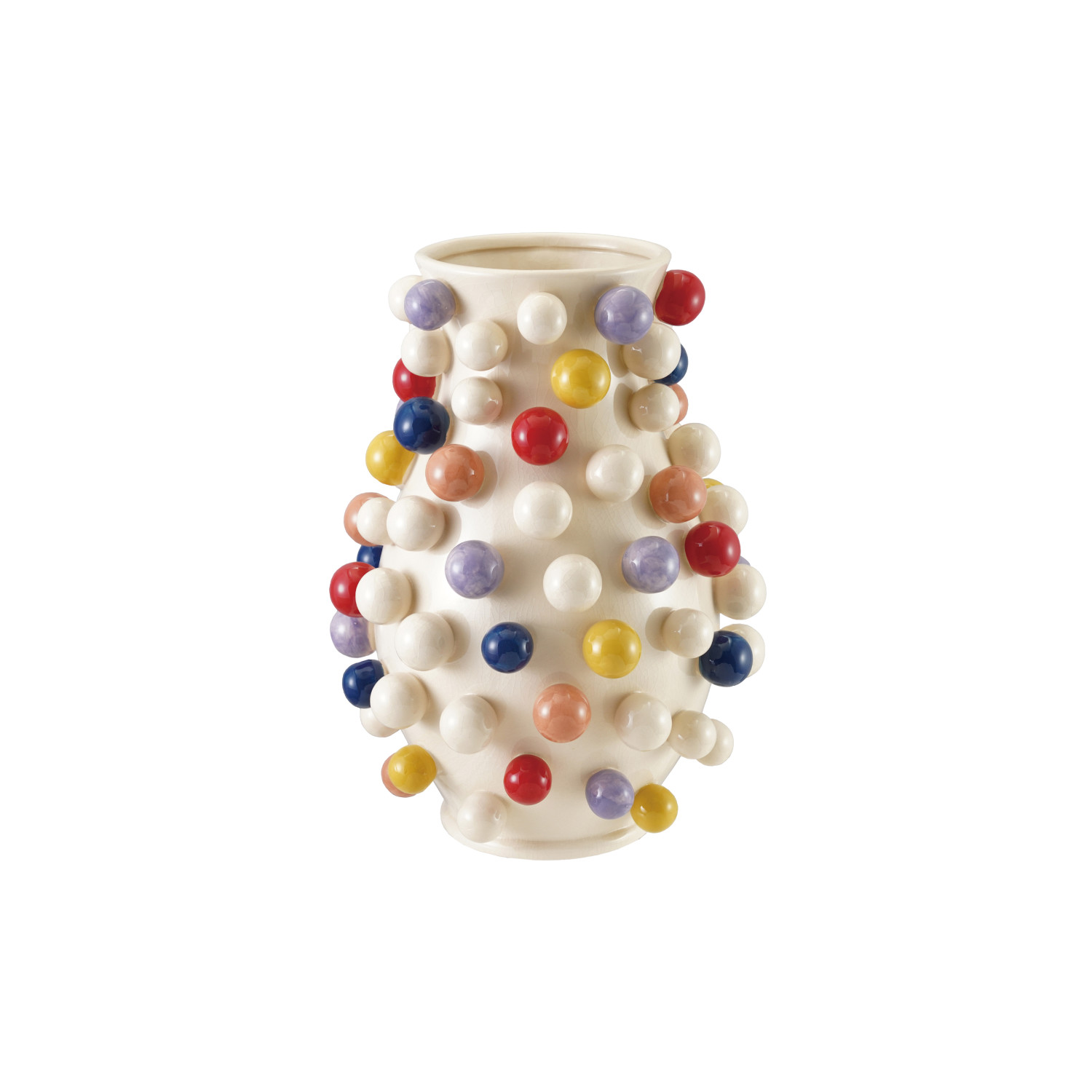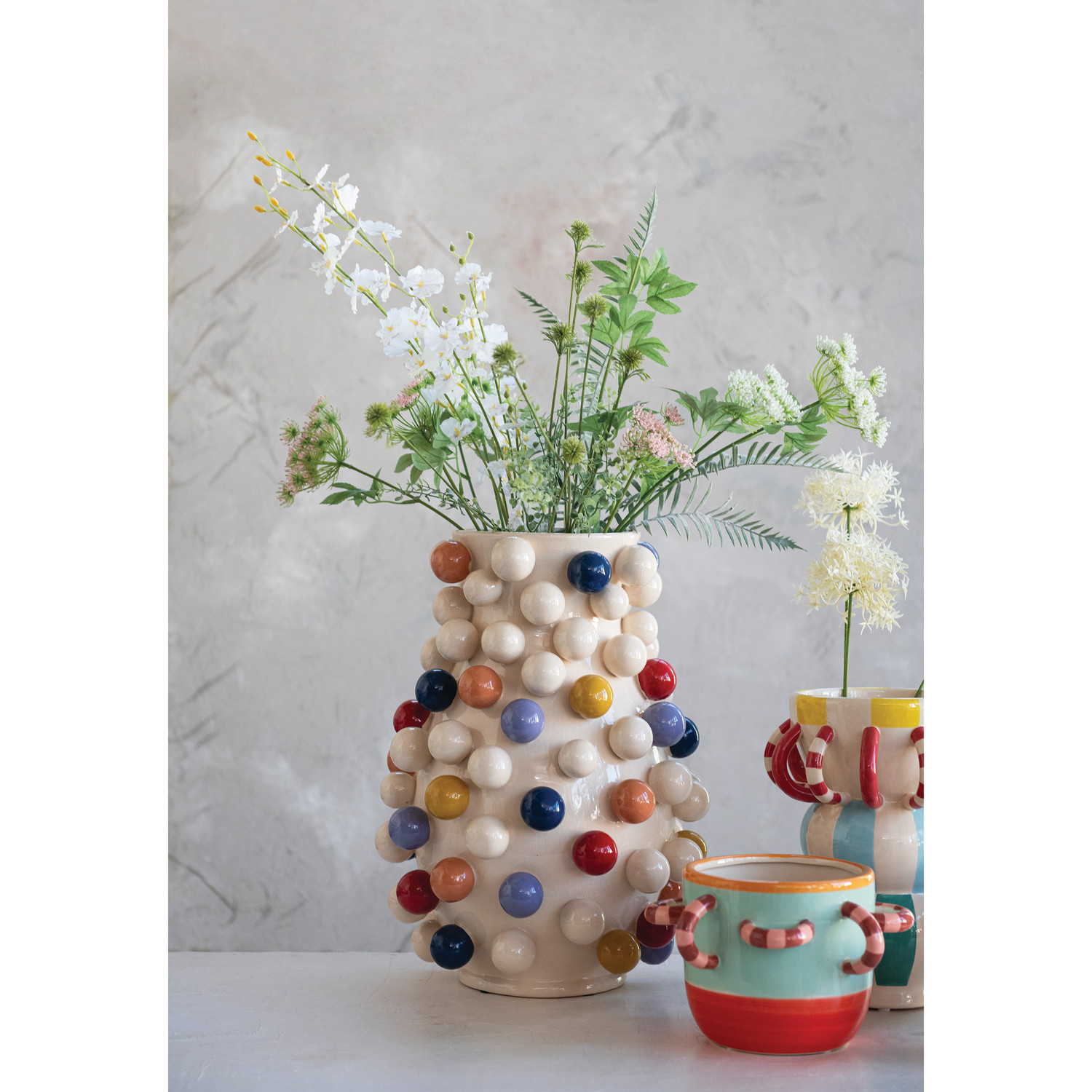 Catalog Name: 12-1/4" Round x 17"H Handmade Stoneware Vase w/ 3D Balls, Crackle Glaze, Multi Color, Truck Ship (Each One Will Vary)