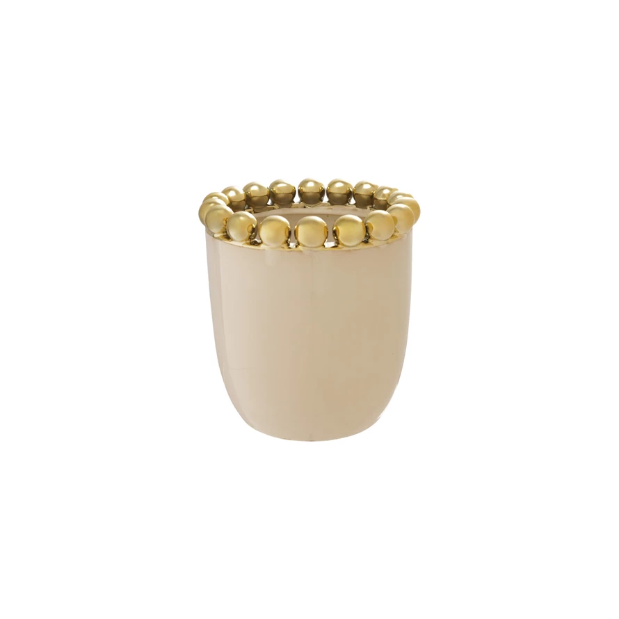 Stoneware Planter/Vase with Gold Electroplated Ball Rim (Holds 5" Pot)
