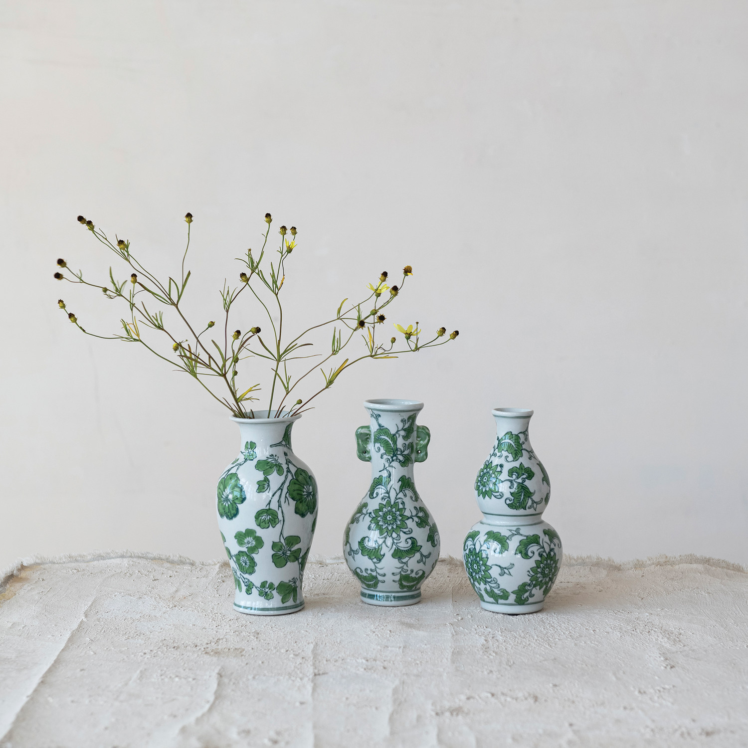 Hand-Painted Stoneware Vase with Floral Design, 3 Styles
