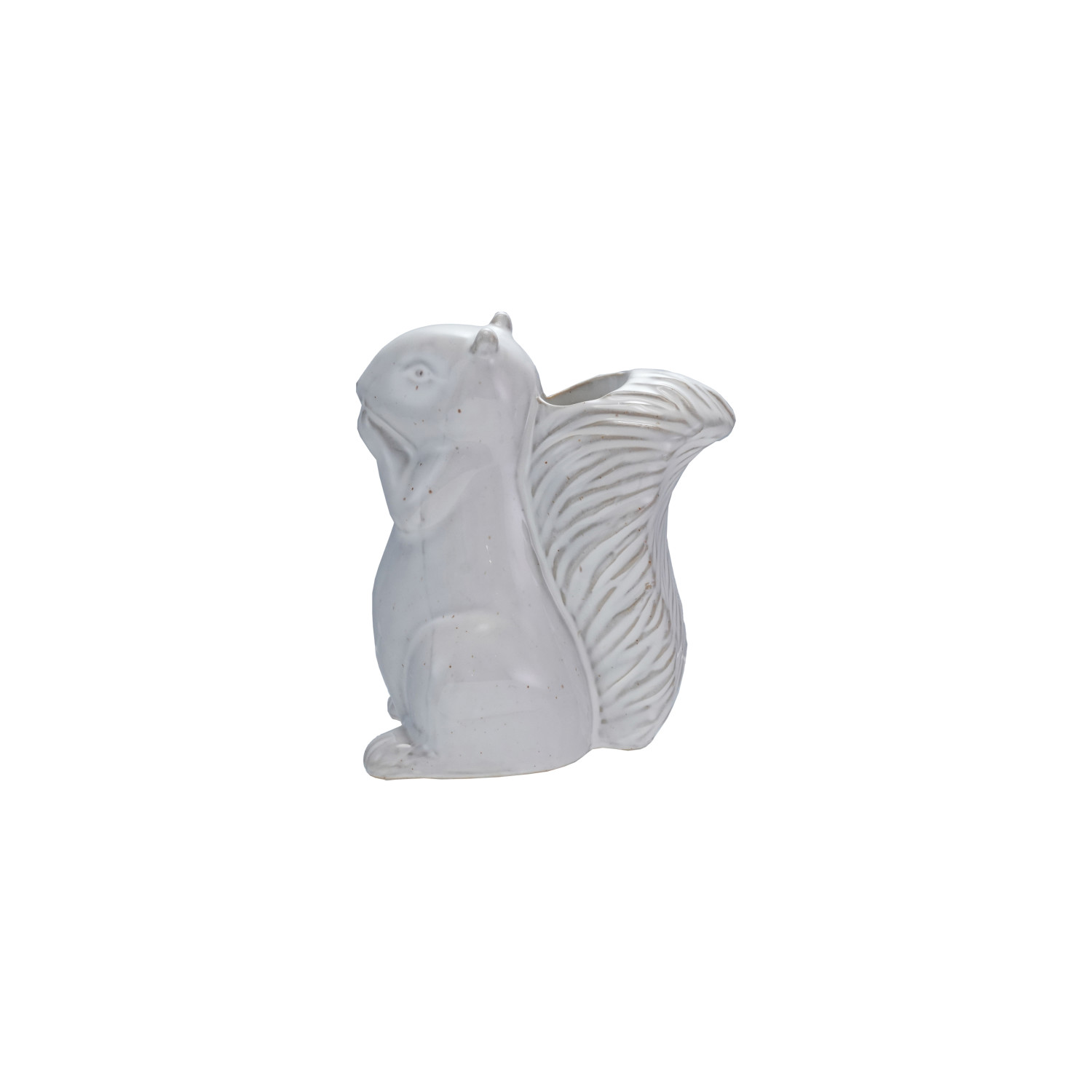 Catalog Name: 3-3/4"L x 2-1/2"W x 4-1/4"H Stoneware Squirrel Shaped Taper Holder, Reactive Glaze, White (Each One Will Vary)