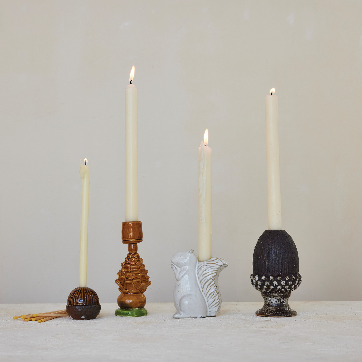Stoneware Squirrel Shaped Taper Holder, White (Each Will Vary)