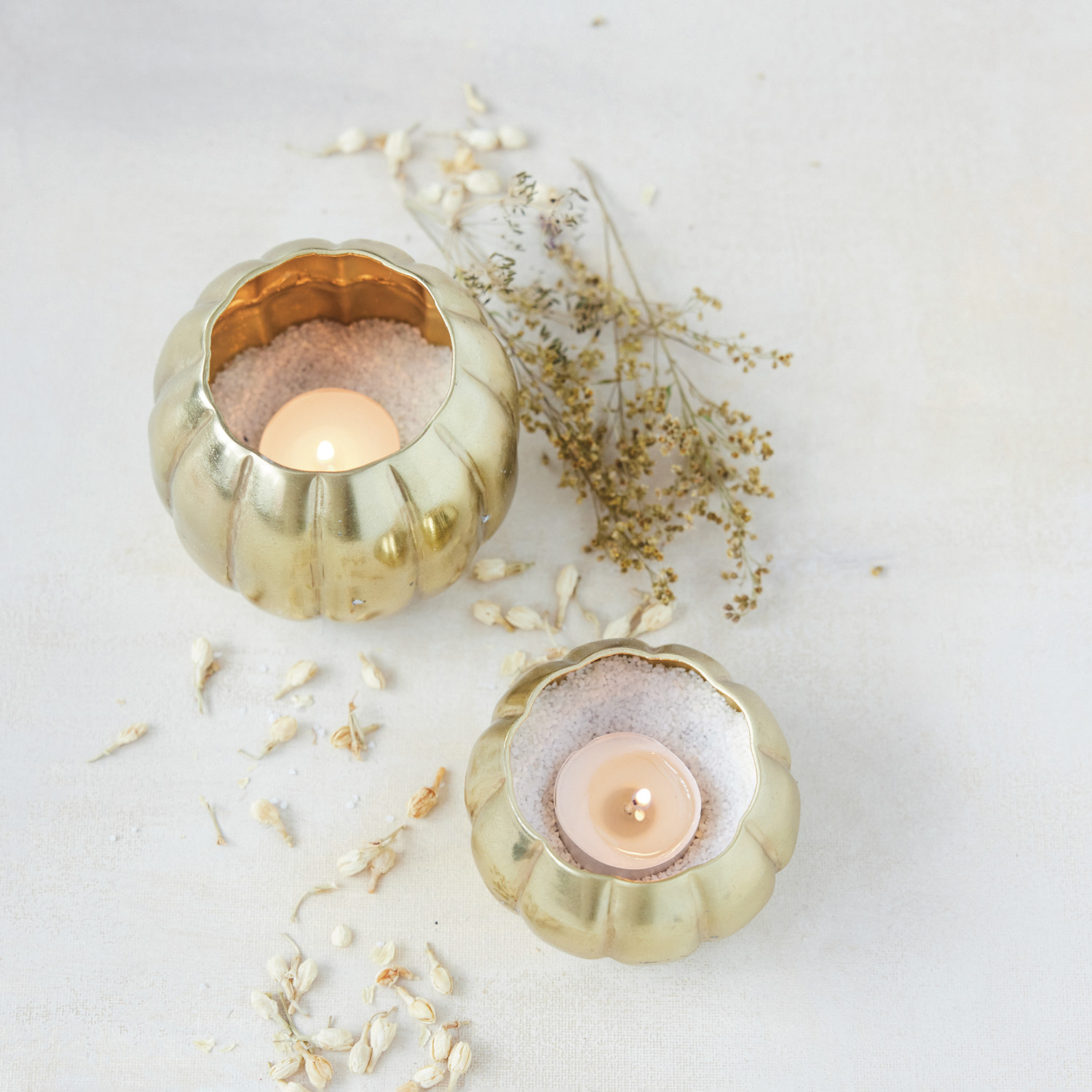 Metal Pumpkin Shaped Tealight/Votive Holder, Gold Finish