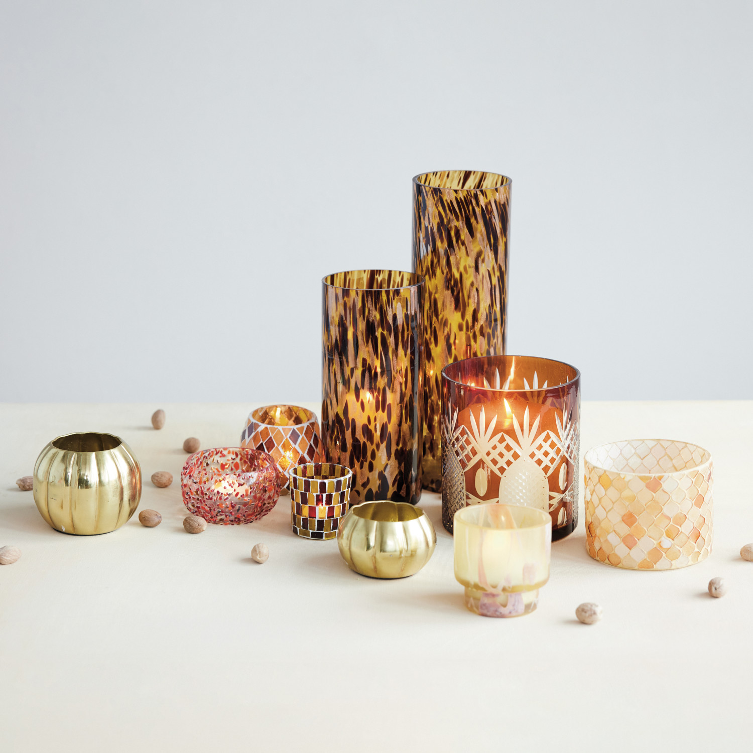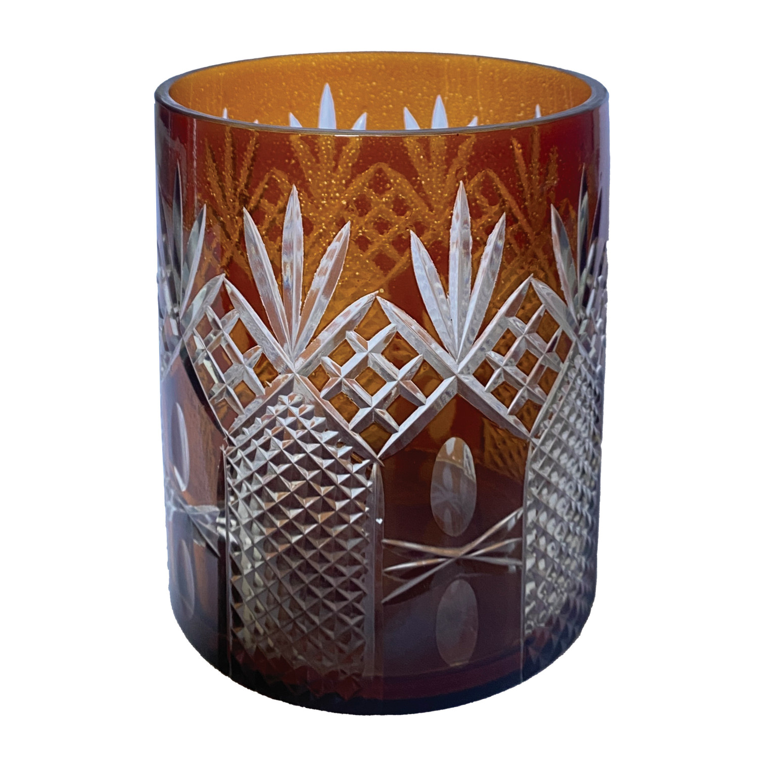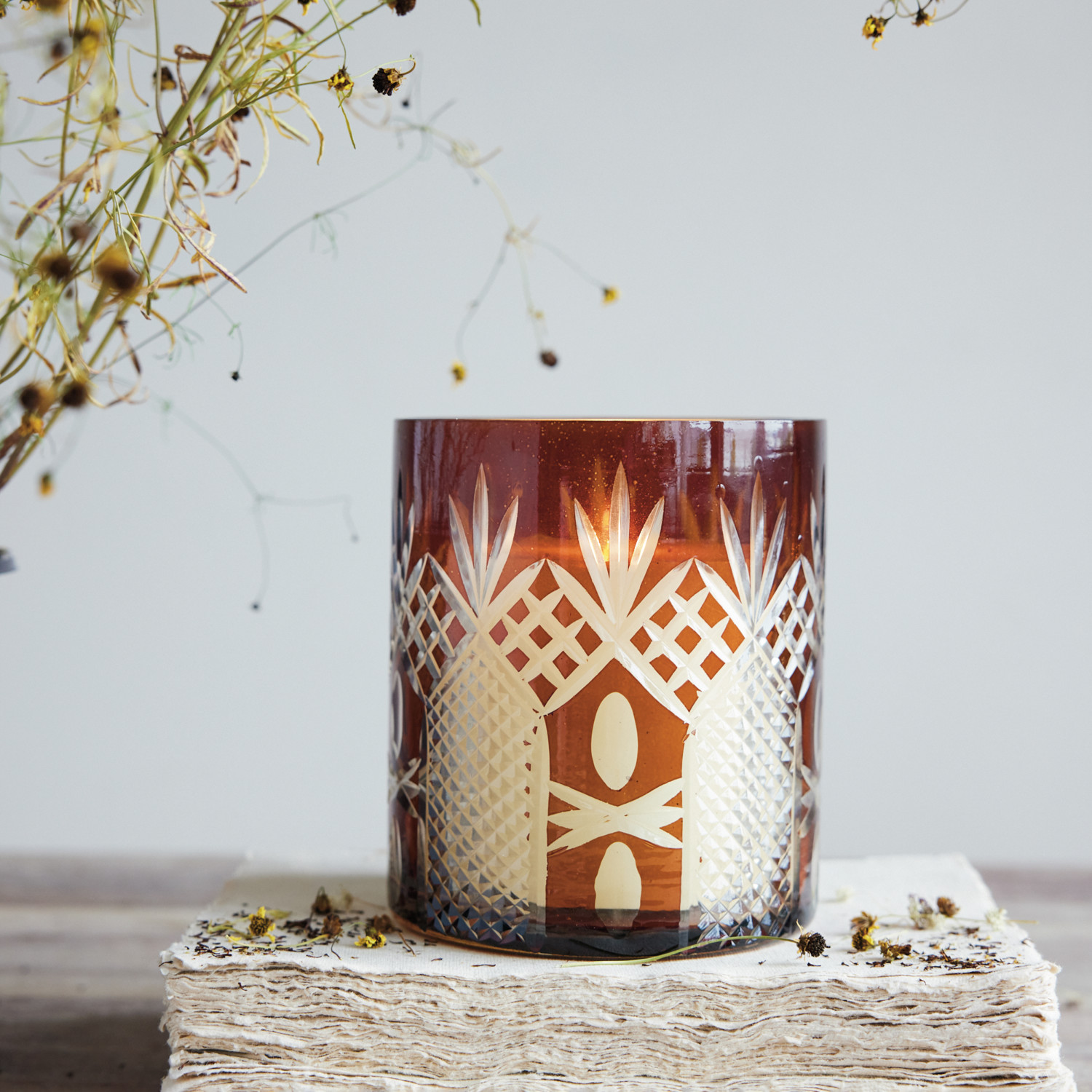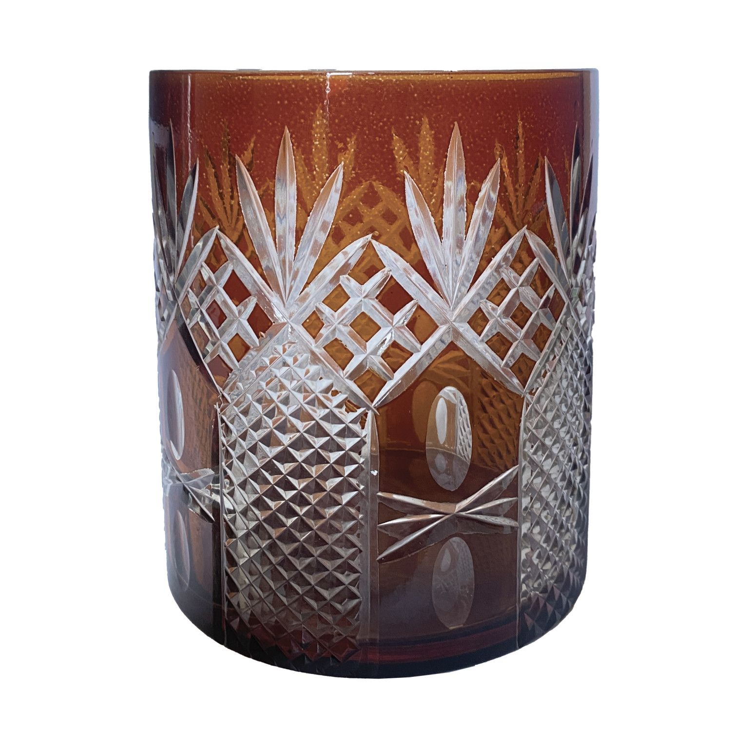 Catalog Name: 5-1/4" Round x 6"H Cut Glass Candle Holder, Brown