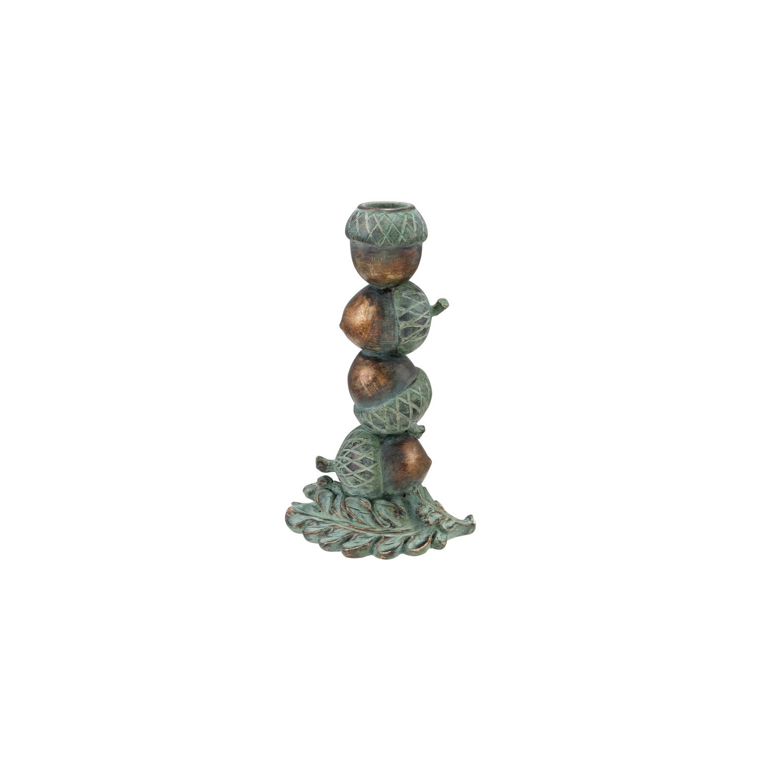 Catalog Name: 4"L x 3"W x 7"H Resin Stacked Acorns Taper Holder, Verdigris & Copper Finish