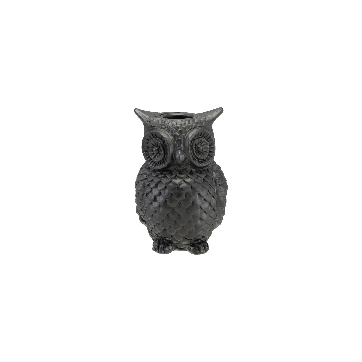 Catalog Name: 2-1/2" Round x 4"H Resin Owl Shaped Taper Holder, Black
