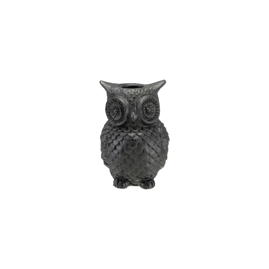 Resin Owl Shaped Taper Holder, Black