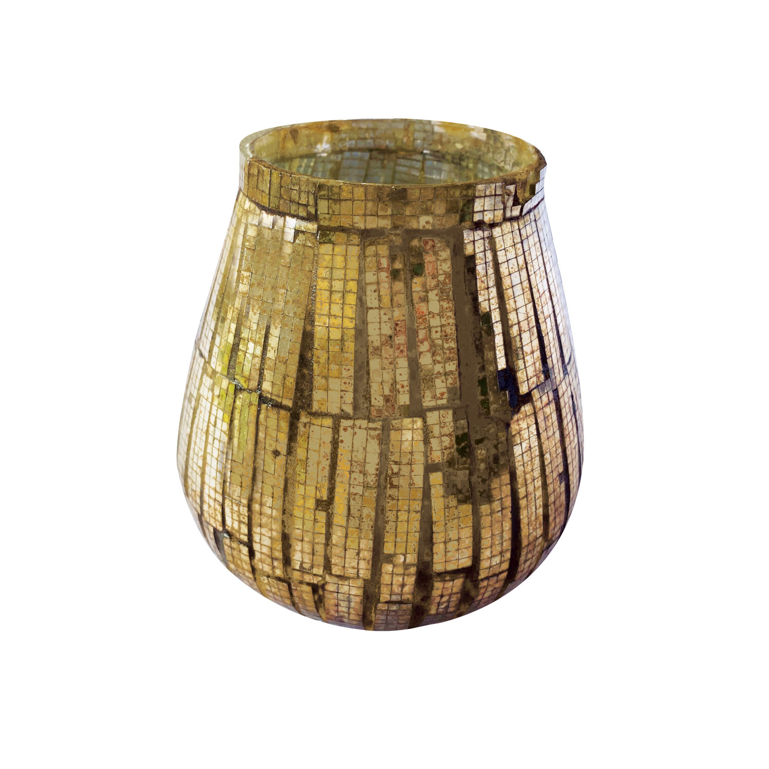 Recycled Glass Mosaic Votive Holder, Antique Copper Finish