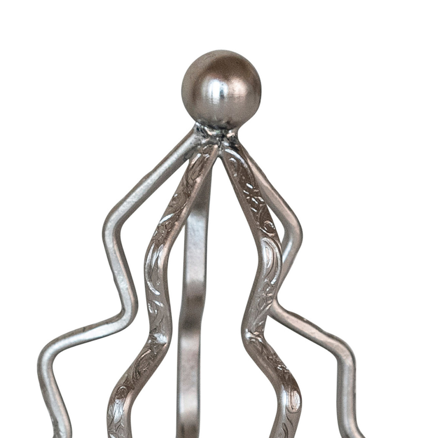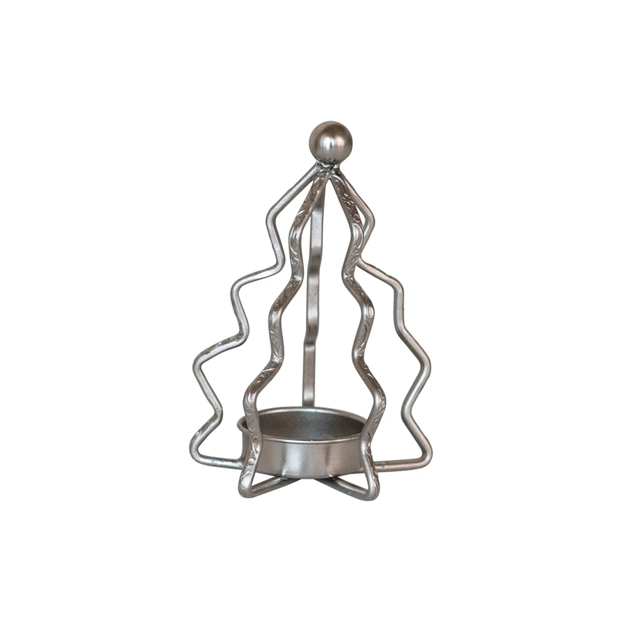 This metal tree shaped tealight holder is a delightful addition to any room. Its round base and compact height allow it to fit snugly in a variety of spaces, while the tree design adds a touch of nature-inspired beauty. Available in silver, it can match different interior themes or seasonal decors. This tealight holder is a versatile and stylish decor piece that can easily be incorporated into any home aesthetic. The warm glow of the tealights against the metal tree design creates a cozy atmosphere perfect for relaxation or entertaining guests. It's not just a candleholder; it's a piece that enhances the ambiance of the home with a gentle, flickering light. A compact metal tree shaped tealight holder that brings a whimsical touch to any setting. An enchanting accent piece that adds a playful yet elegant charm to the home decor. Ideal for festive occasions or as a charming year-round decoration, it casts a serene light through its tree-shaped cutouts.