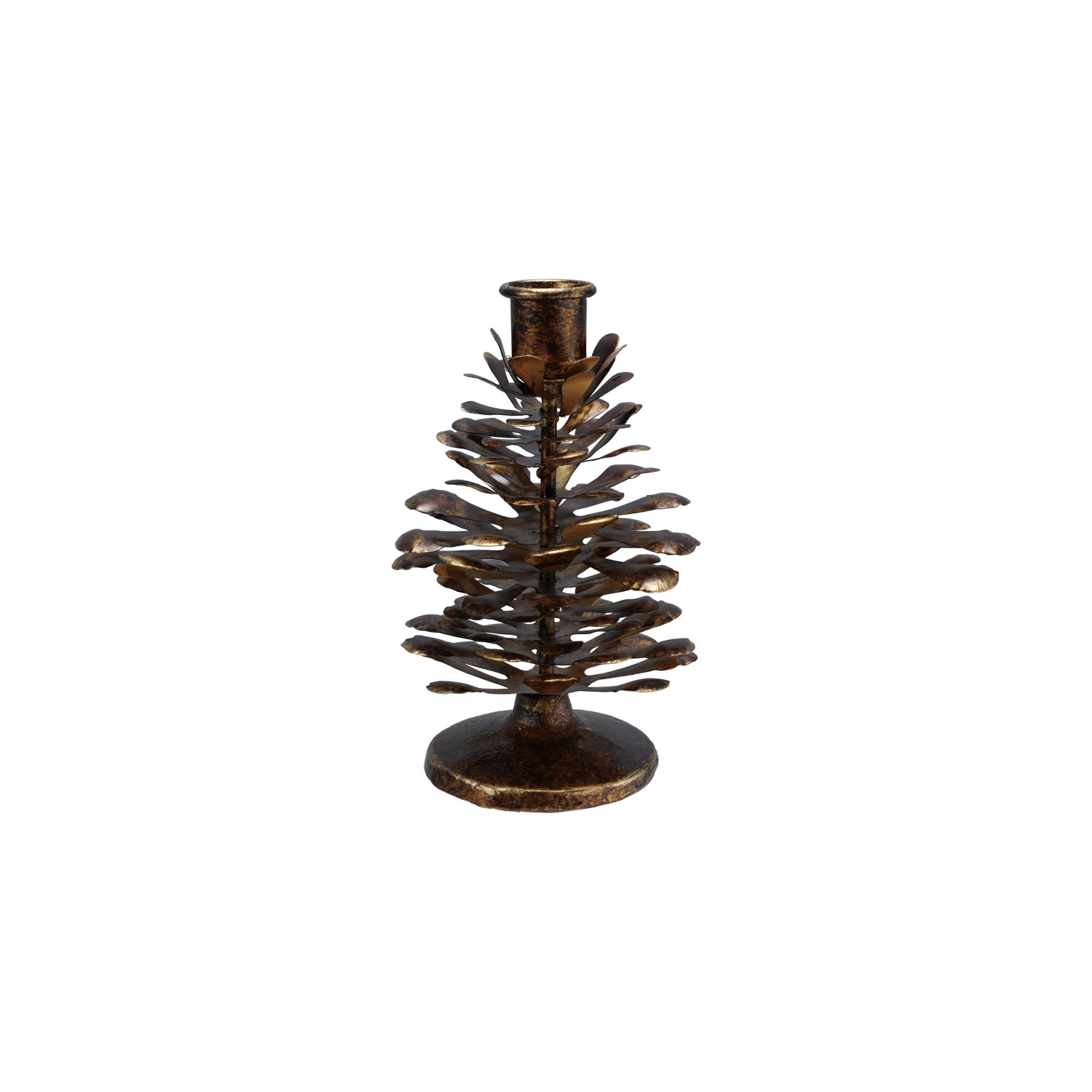 Metal Pinecone Shaped Taper Holder, Antique Gold Finish