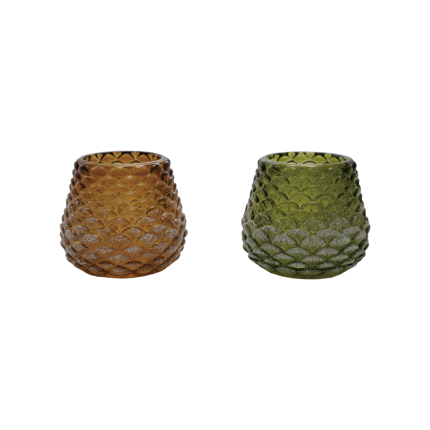 Glass Pinecone Shaped Tealight/Votive Holder, 2 Colors