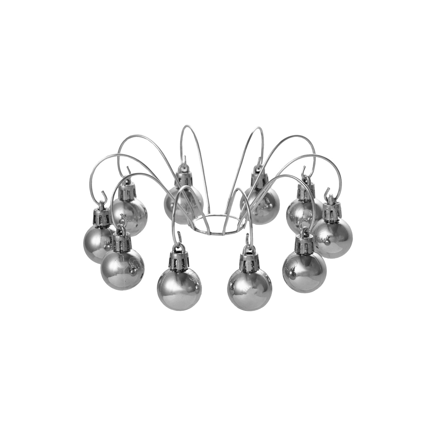 Catalog Name: 5-3/4" Round x 3-1/4"H Metal Candle Bobeche w/ Dangling Ornaments, Silver Finish