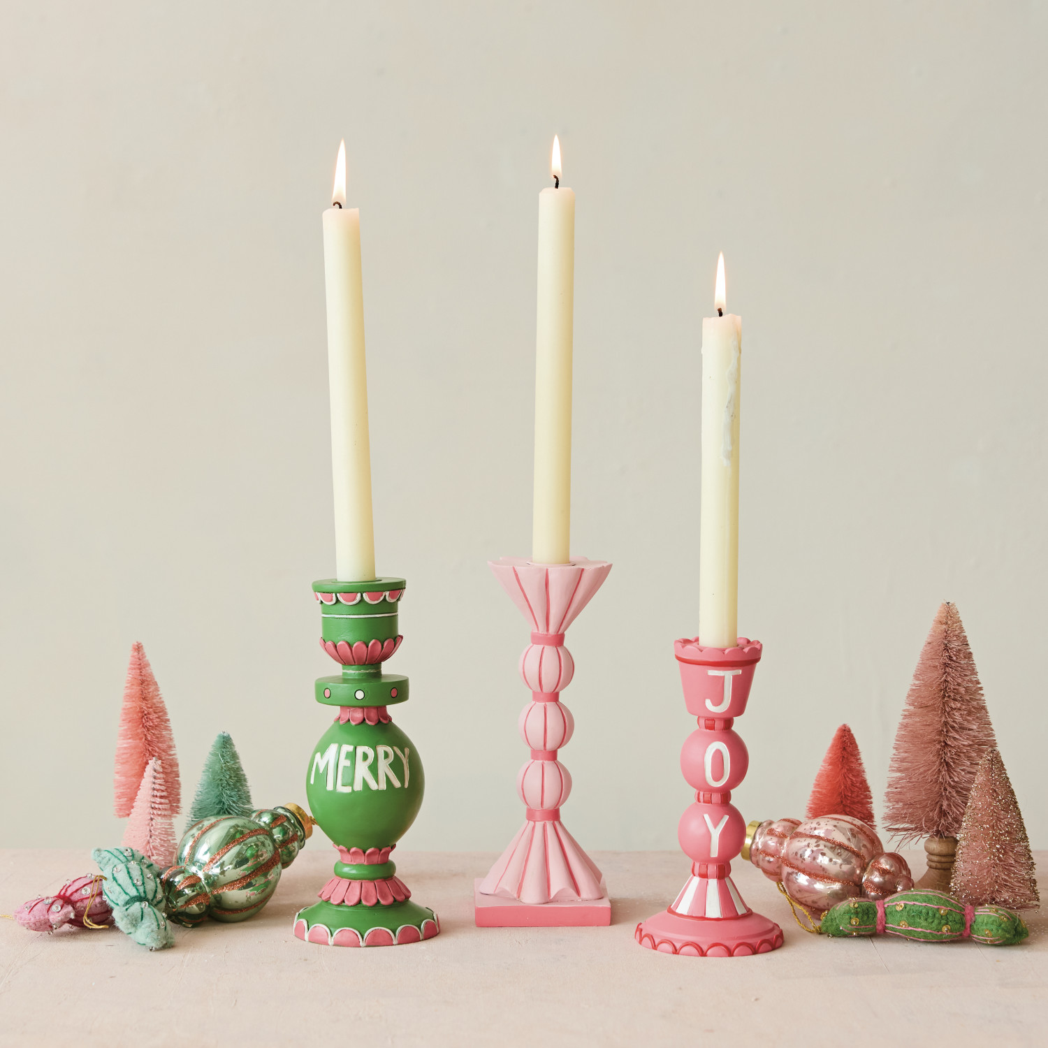 Resin Fluted Striped Taper Holder, Pink ©