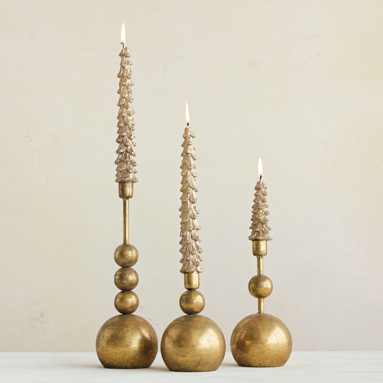 Catalog Name: 4" Round x 8"H Metal Ball Taper Holder, Antique Gold Finish