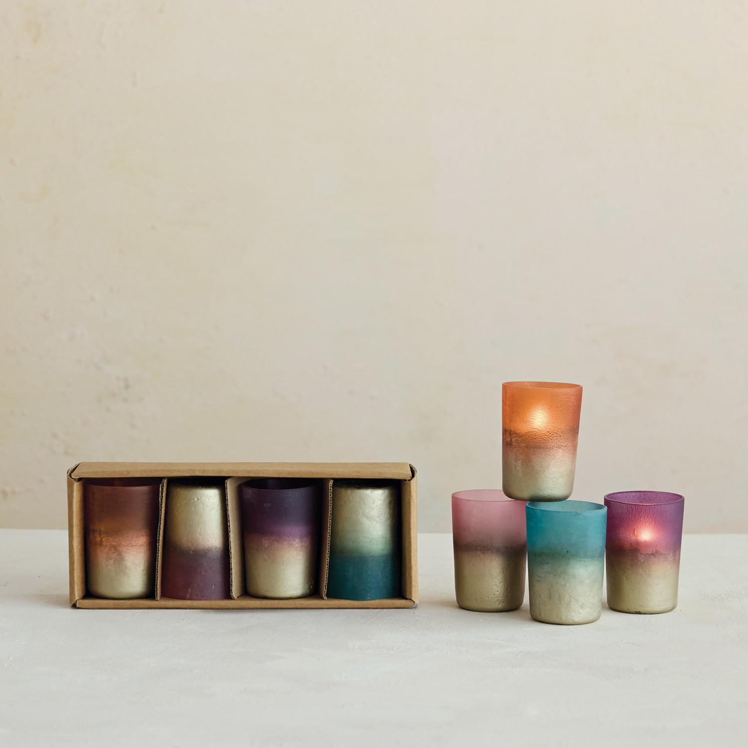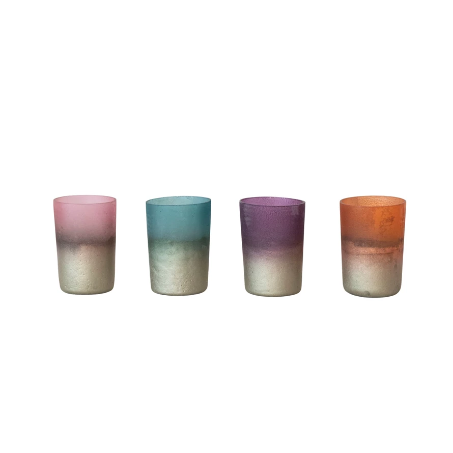 Glass Metallic Frosted Tealight/Votive Holders Ombre, Boxed Set of 4