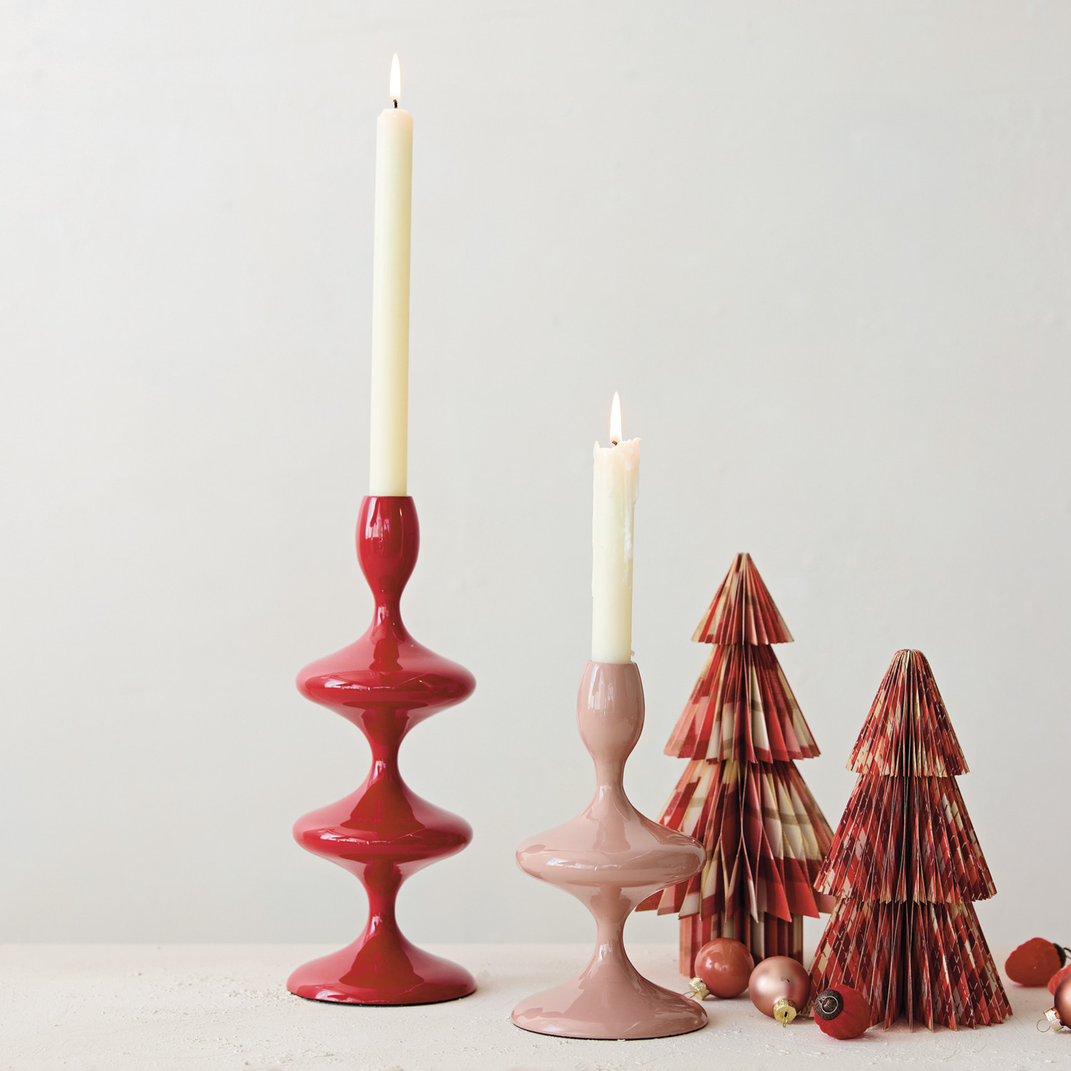 Catalog Name: 4-1/4" Round x 7-3/4"H Enameled Cast Aluminum Taper Holder, Pink