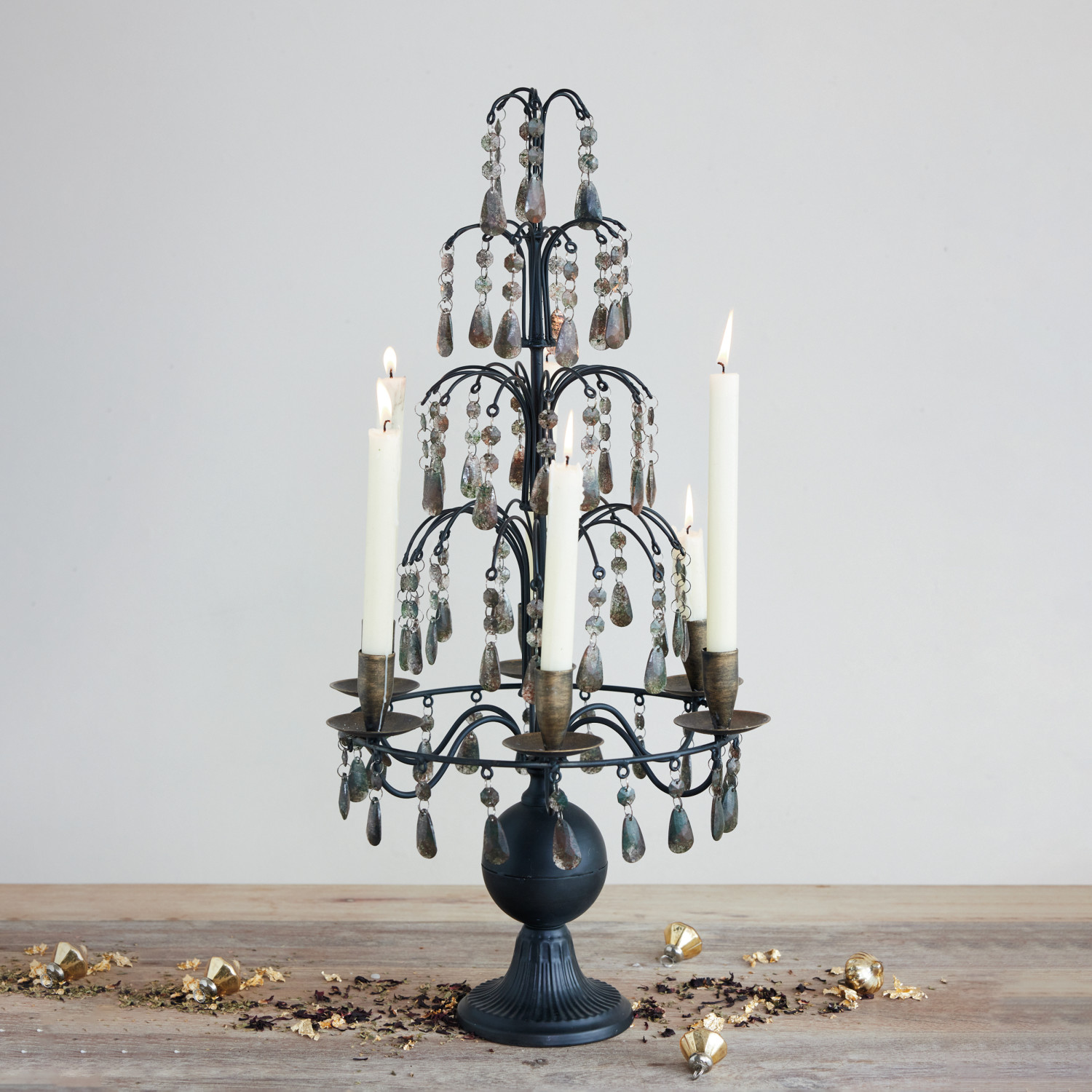 Metal Candelabra with Smoke Color Acrylic Crystals, Matte Black (Holds 6 Tapers)