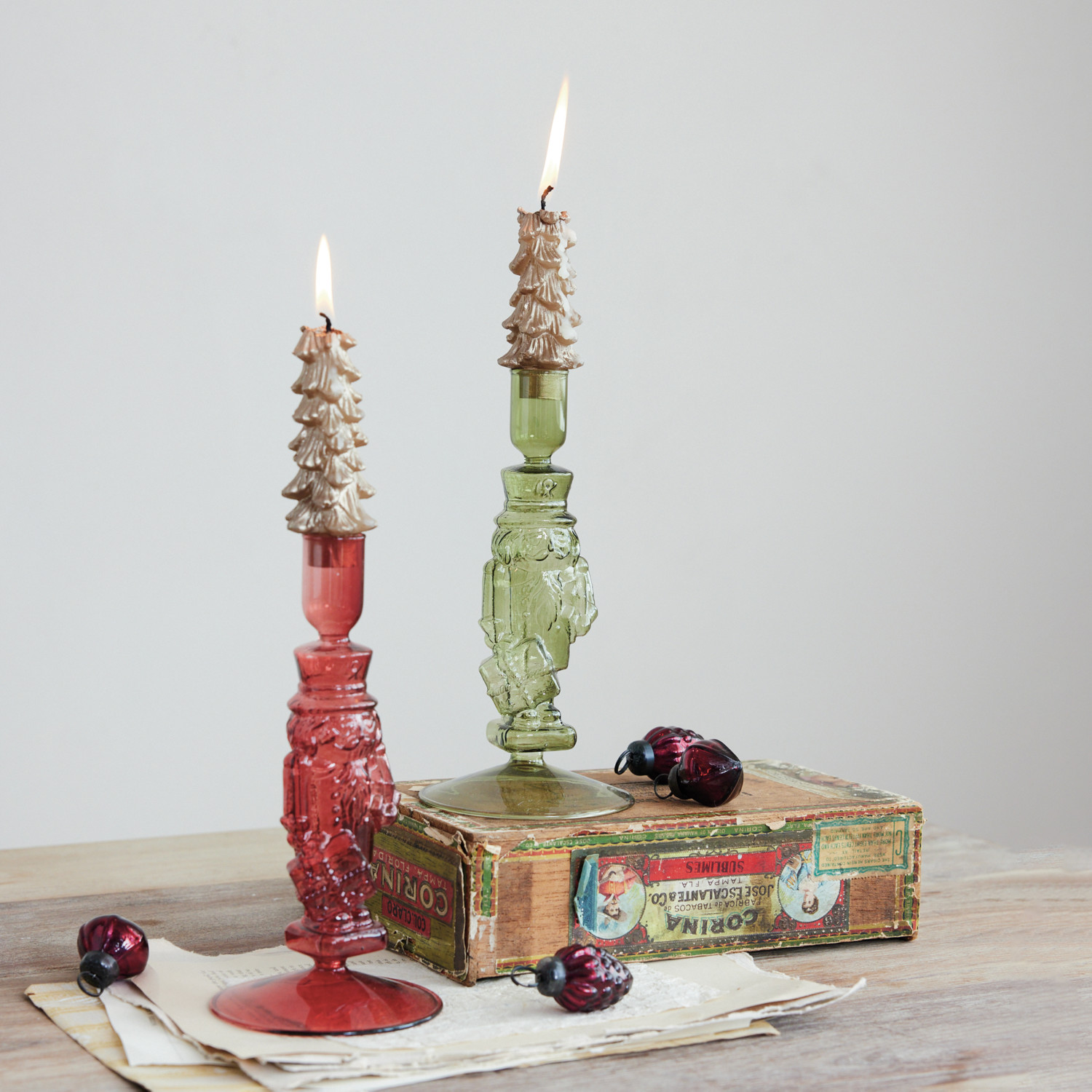 Glass Nutcracker Shaped Taper Holder, 2 Colors