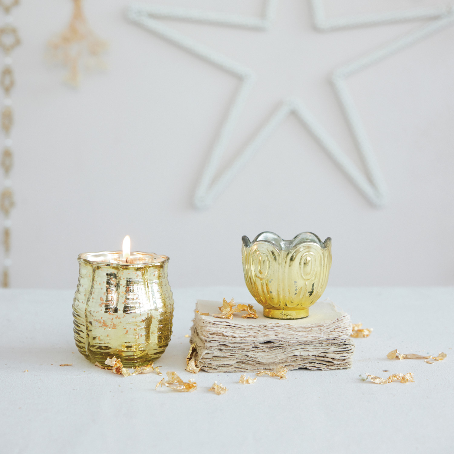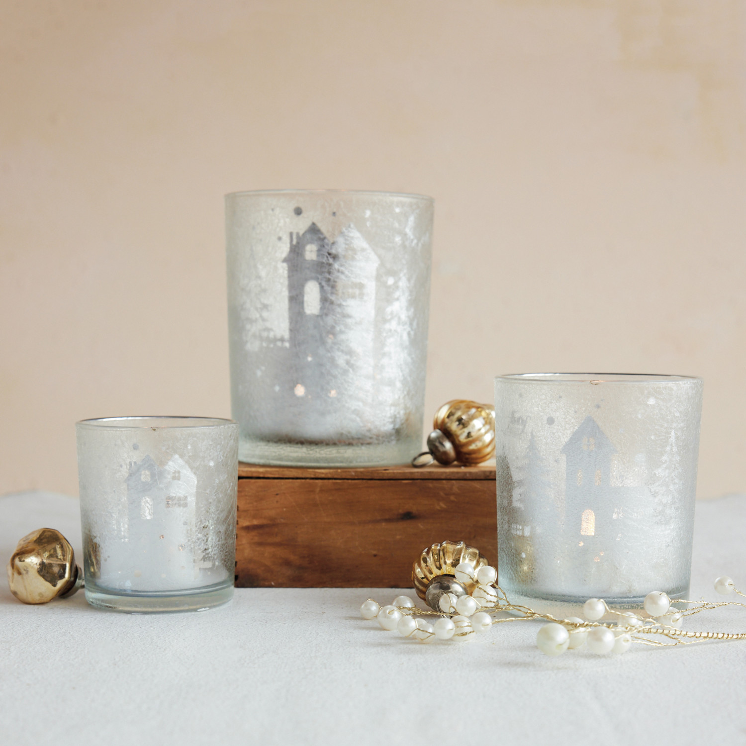 Mercury Glass Tealight/Votive Holder with Laser Etched Scene, Silver Finish