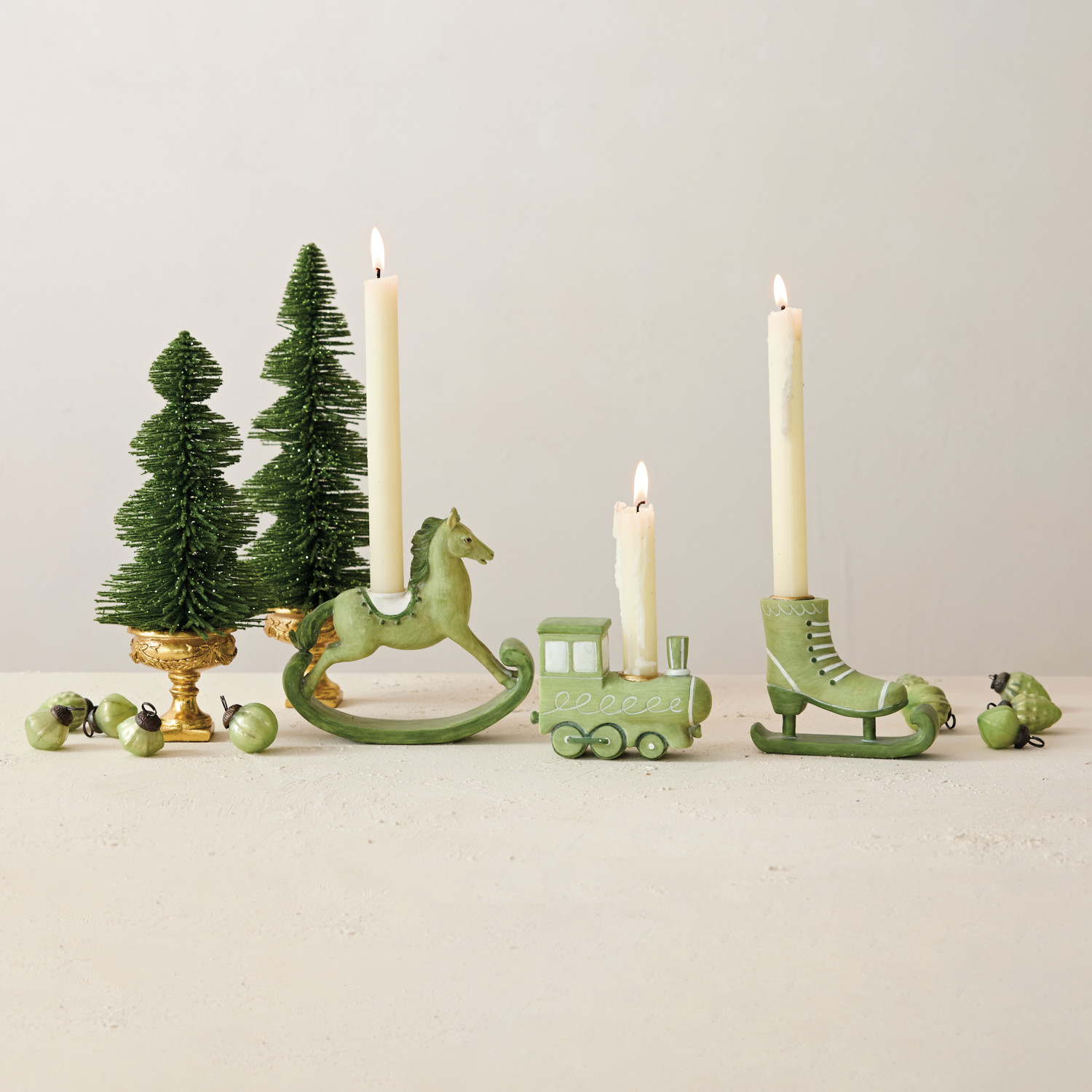 Catalog Name: 4-1/2"L x 3-1/4"H Resin Train Shaped Taper Holder, Green, White & Gold Finish ©