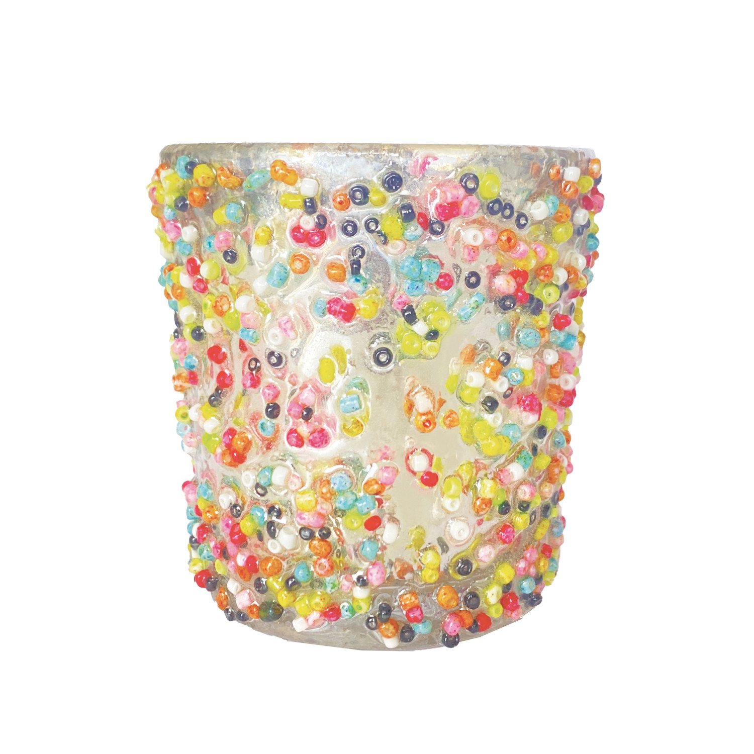 Catalog Name: 2-3/4" Round x 2-3/4"H Mercury Glass Tealight/Votive Holder w/ Confetti Beads, Multi Color