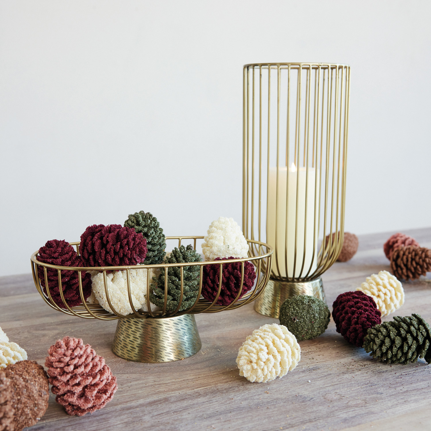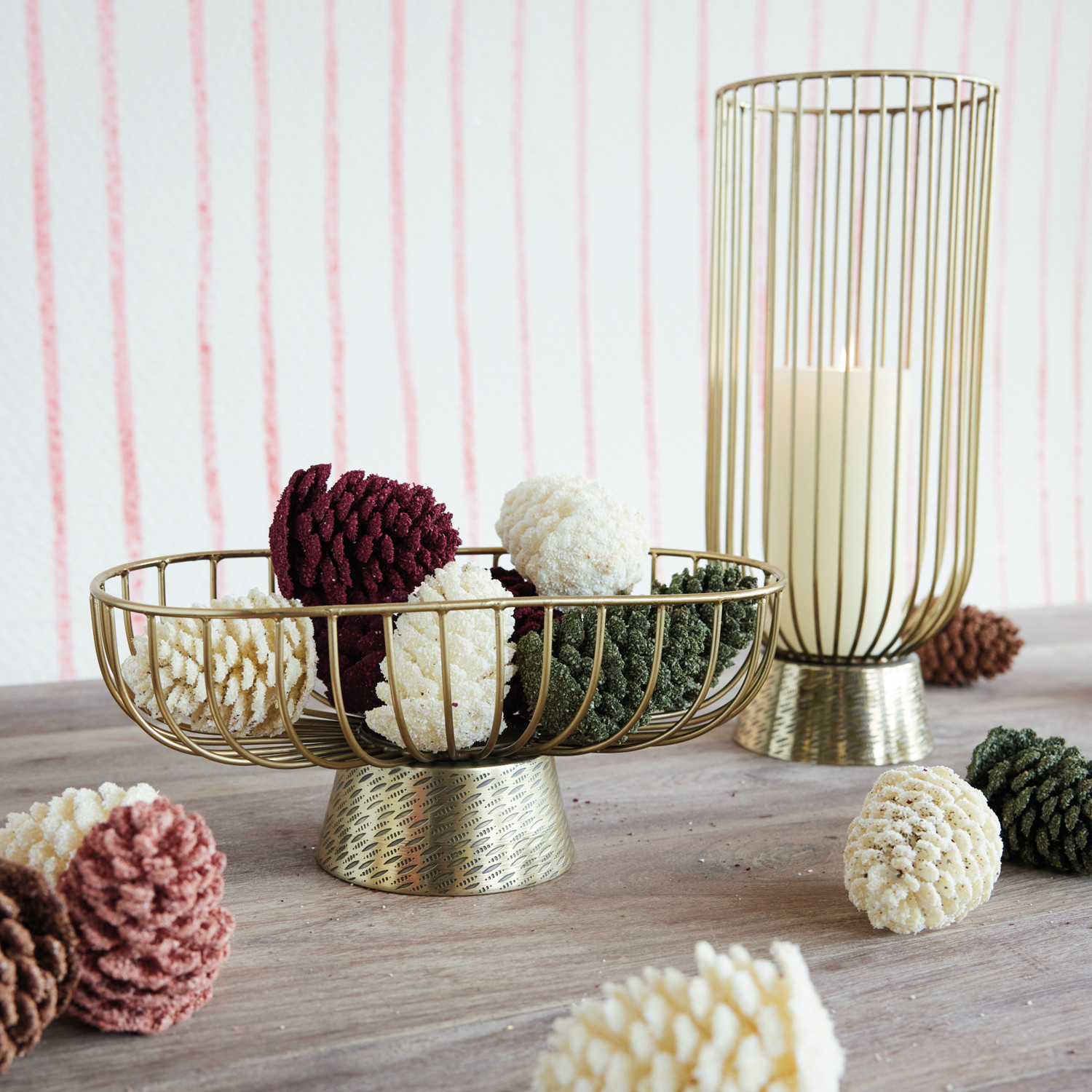 Catalog Name: 6" Round x 14"H Embossed Metal Wire Footed Candle Holder, Gold Finish