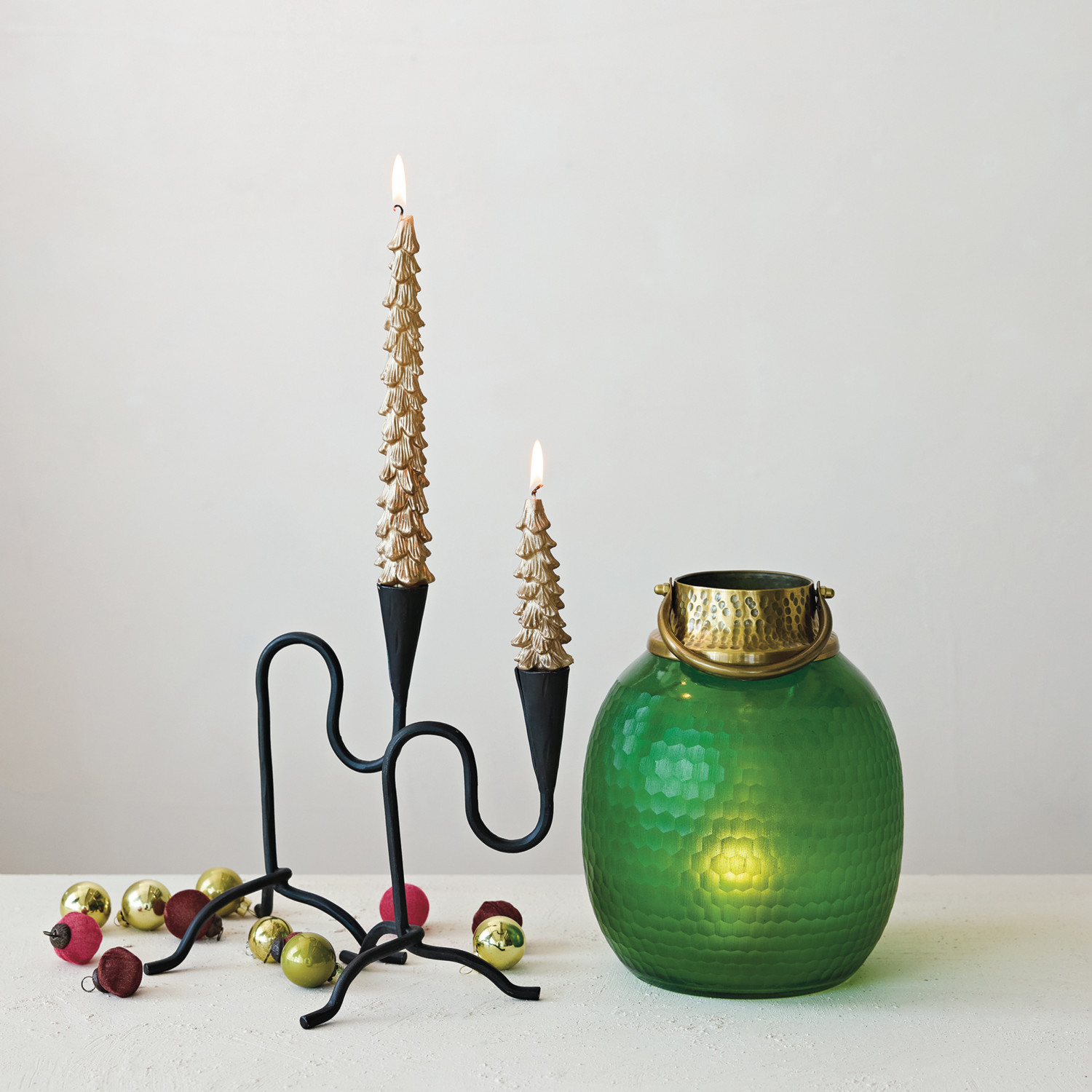 Hammered Glass & Metal Lantern, Green & Antique Gold Finish
