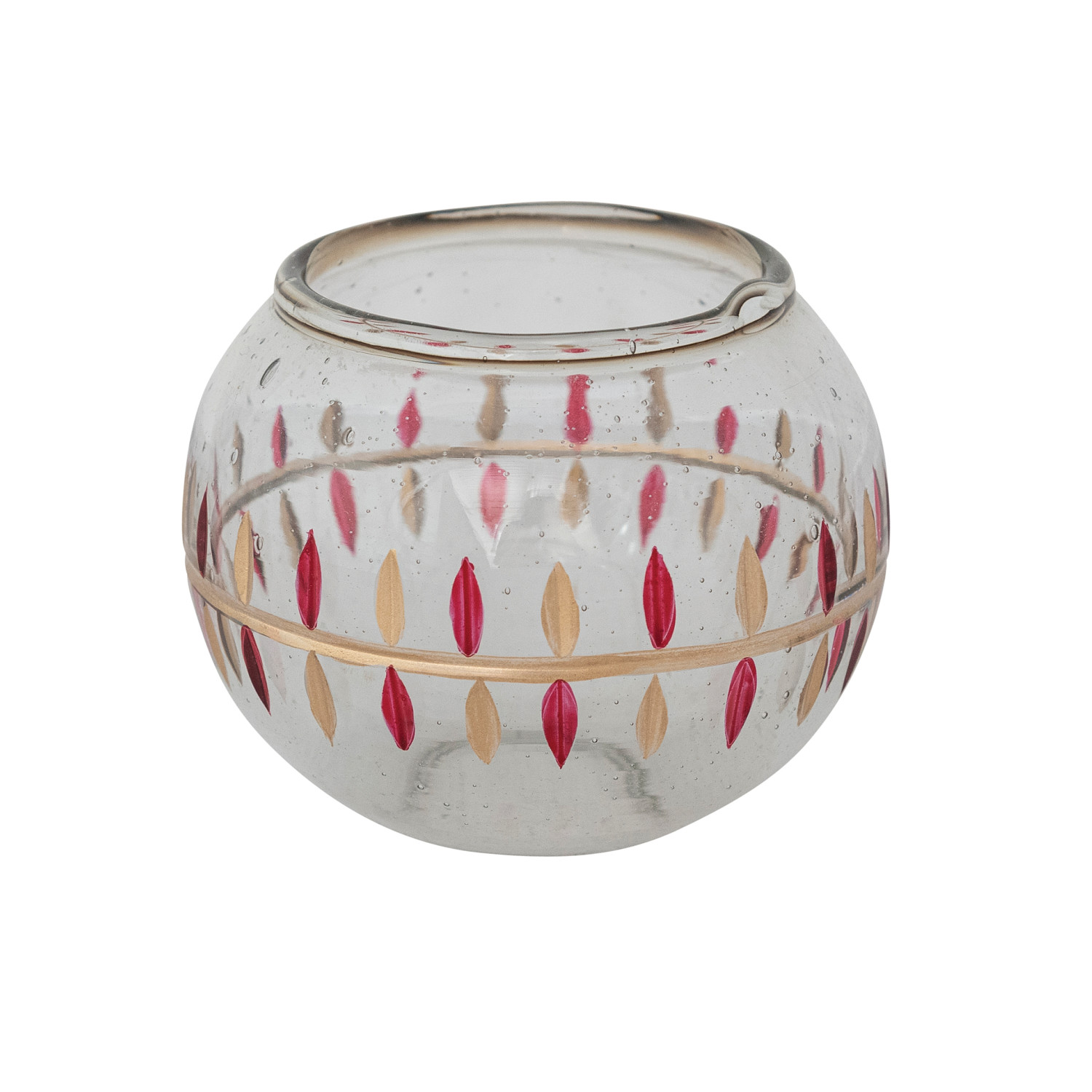 Hand-Painted Seeded Glass Votive Holder with Etched Vine Design, Red & Gold Finish