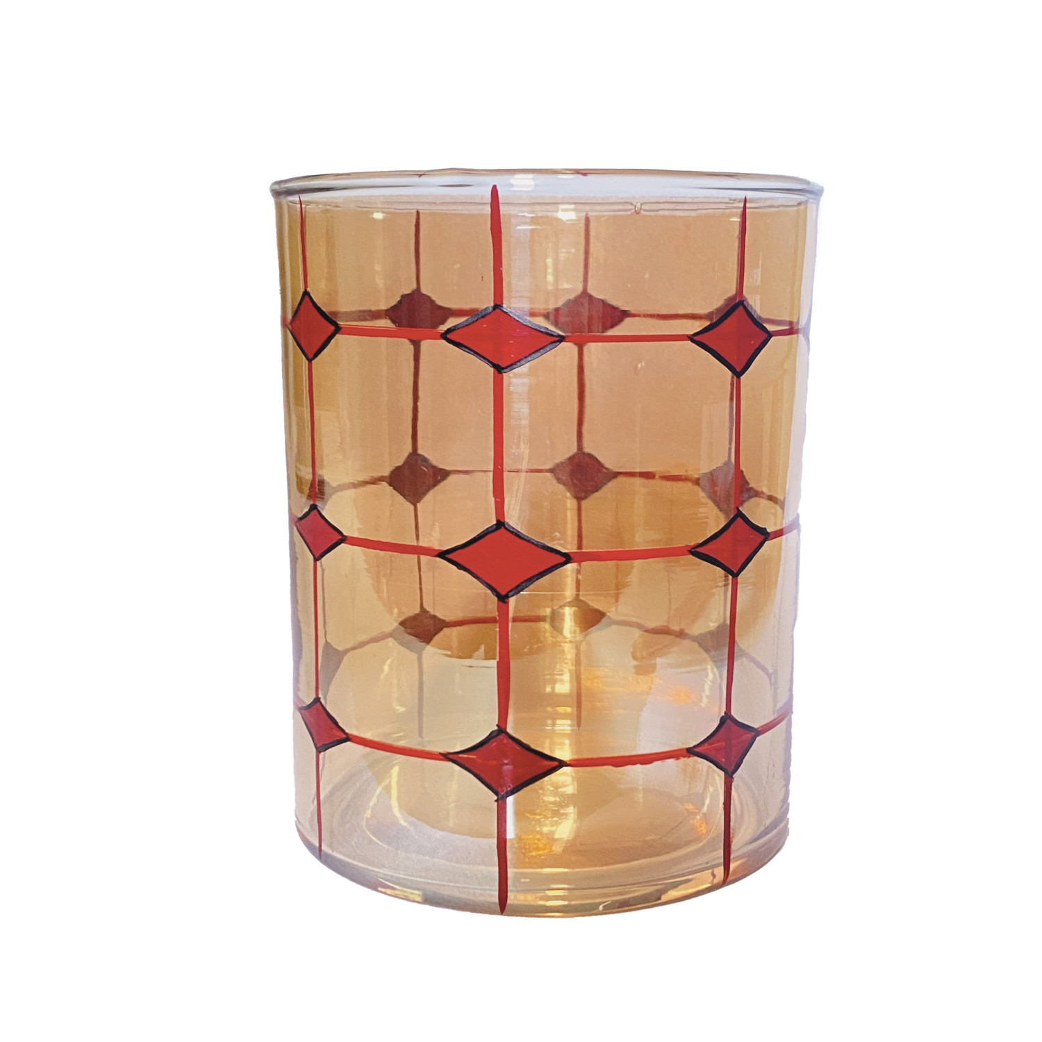 Hand-Blown Glass Tealight/Votive Holder with Hand-Painted Grid & Diamond Pattern