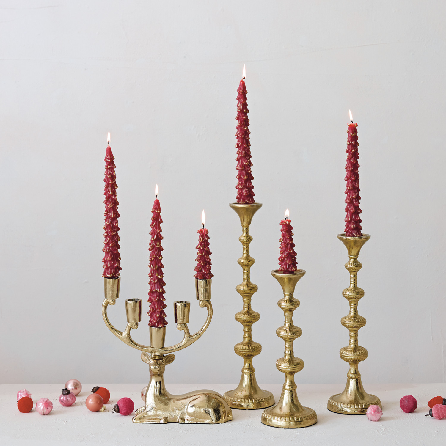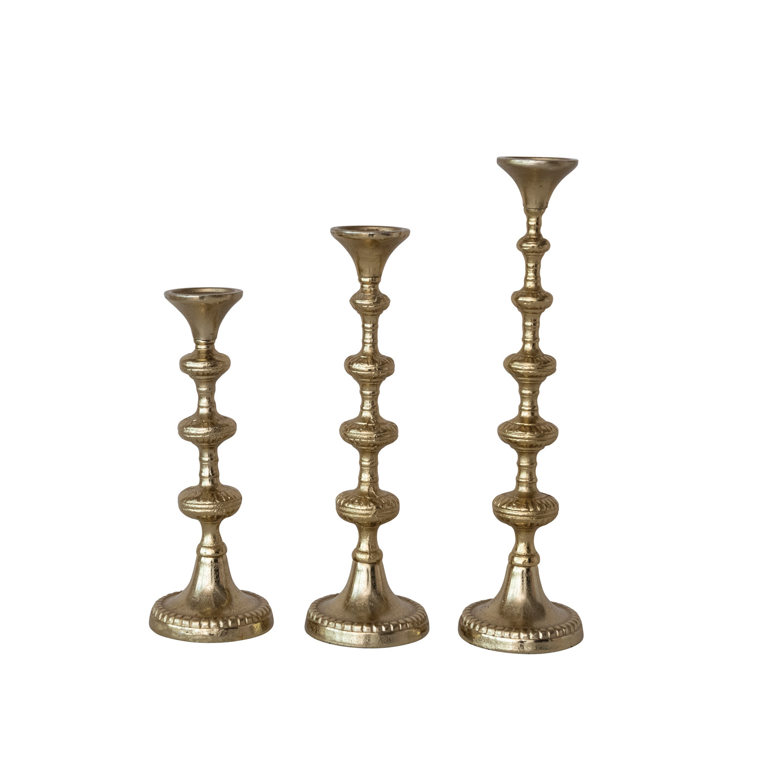 Cast Aluminum Taper Holders, Gold Finish, Set of 3