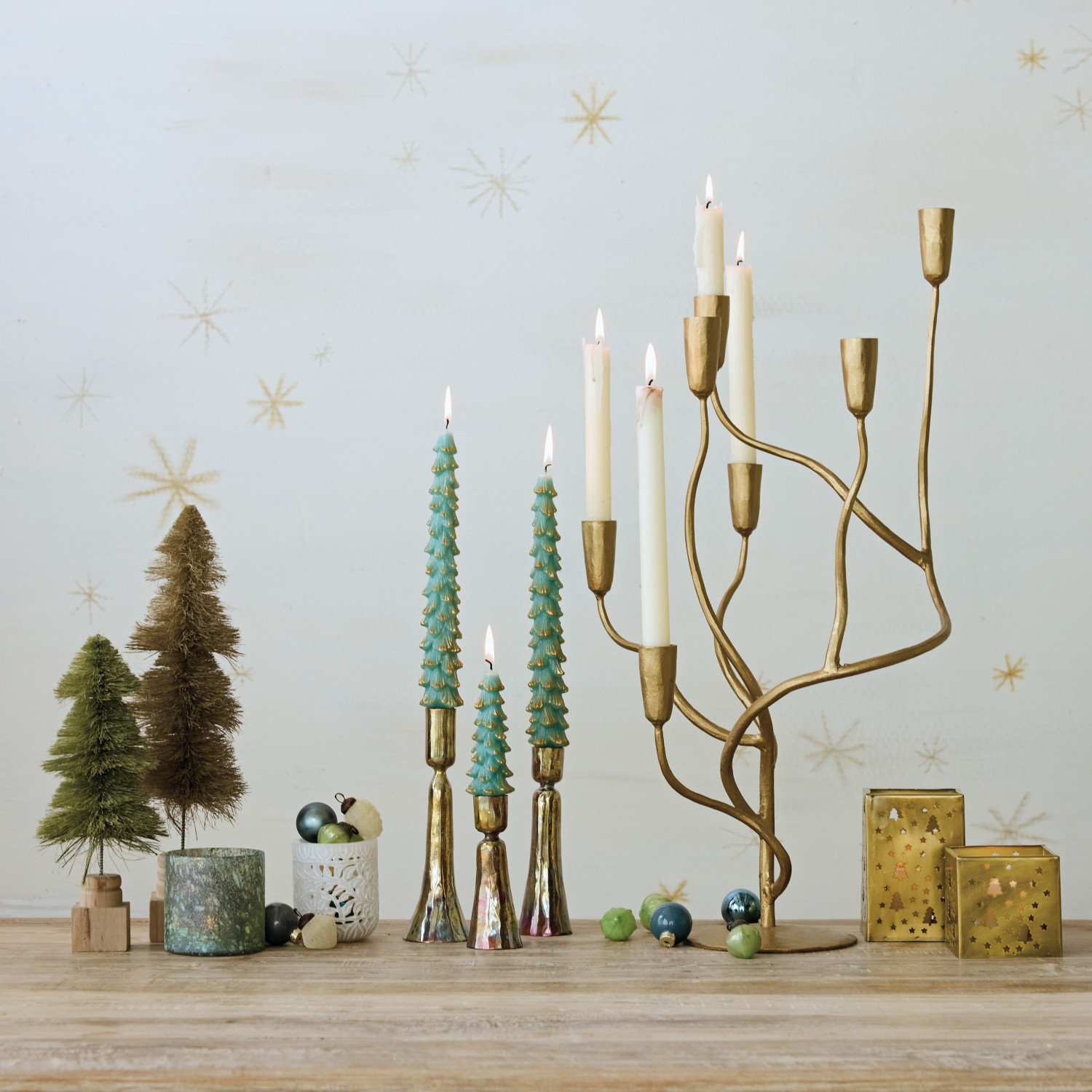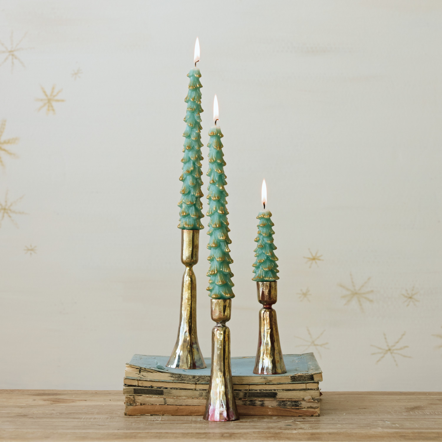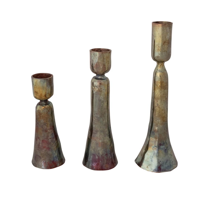 Hand-Forged Iron Taper Holders, Burnt Copper Finish, Set of 3