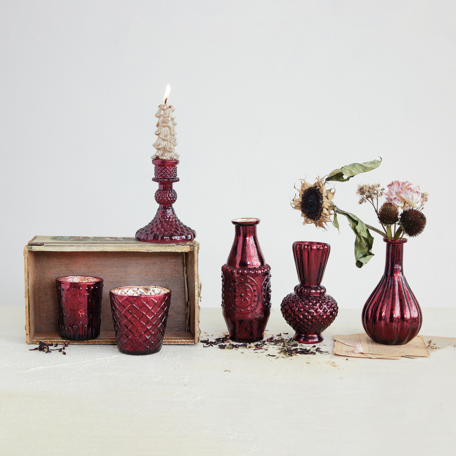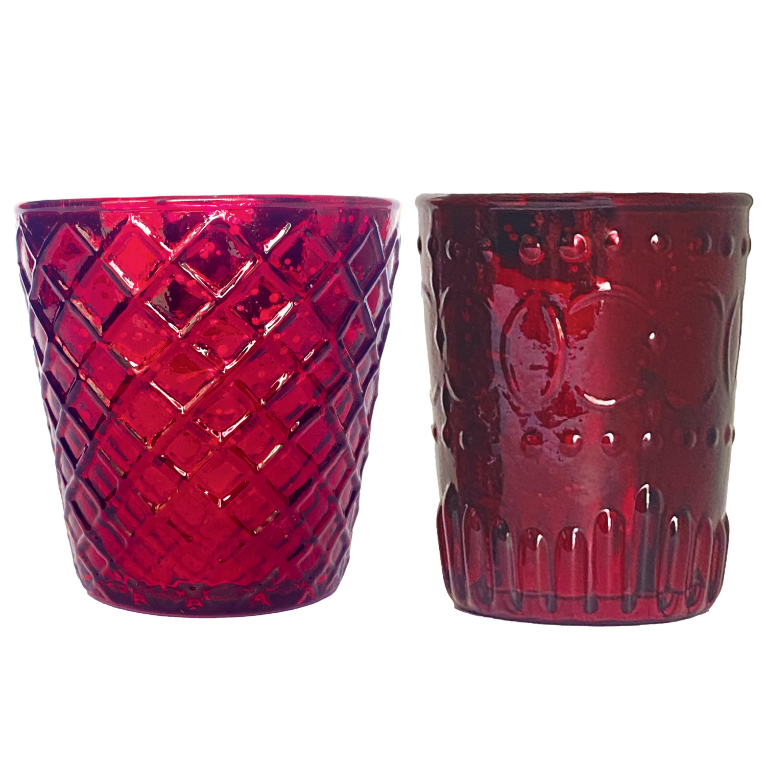 Embossed Mercury Glass Tealight/Votive Holder, Burgundy, 2 Styles