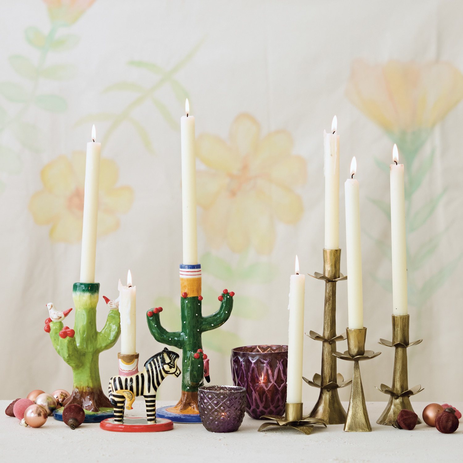 Hand-Painted Stoneware Vintage Reproduction Zebra Shaped Taper Holder with Birds